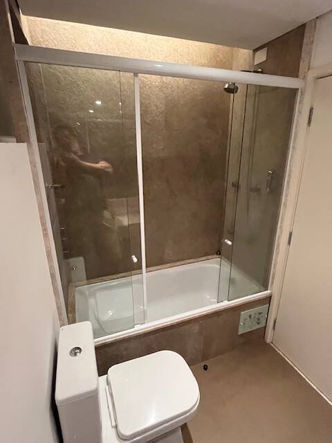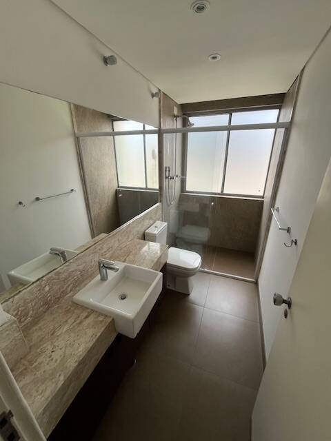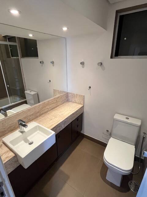 Banheiro social: aquecimento central, louças deca, ducha higiênica, box blindex