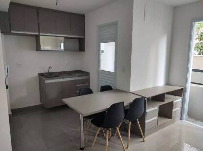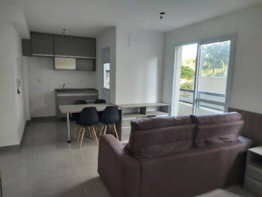 Apartamento Studio 34,72m² Mobiliado, composto por 1 dormitório, banheiro, sala com sacada, cozinha, área de serviço.