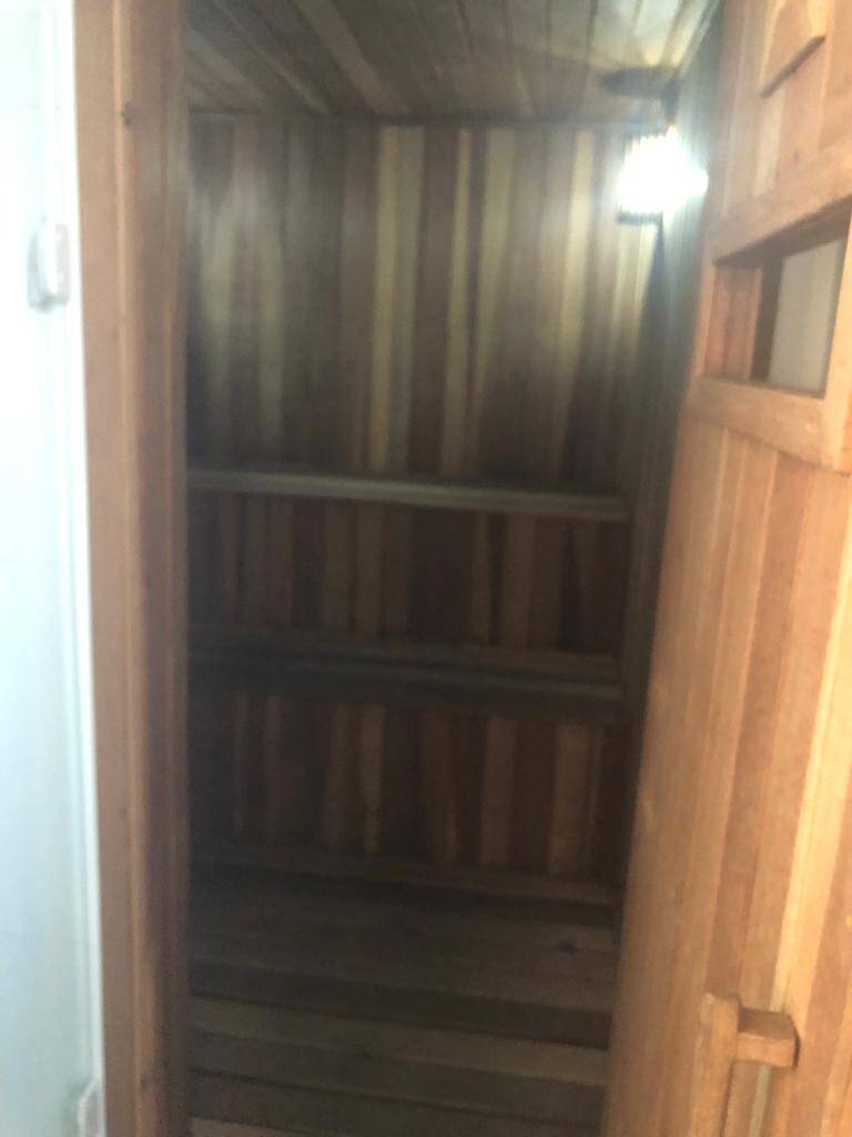 -sauna seca com ducha e área de descanso
