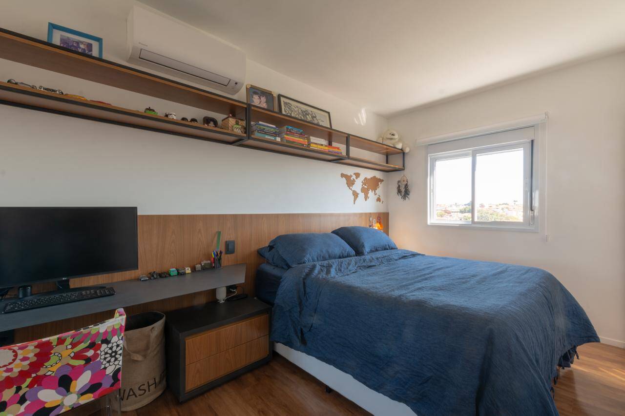 Apartamento reformado, com 60m², 1 suíte, sala com sacada e bar, além de segurança com porta blindada.