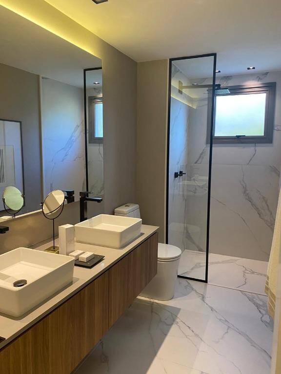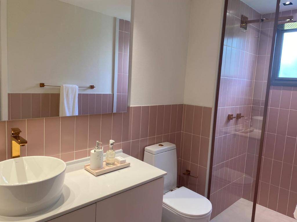 O apartamento conta com 3 suítes espaçosas, cada uma com banheiros equipados com ventilação natural e misturador de água quente, garantindo conforto e praticidade. Todos os dormitórios estão equipados com tomadas USB, facilitando o carregamento de dispositivos eletrônicos.