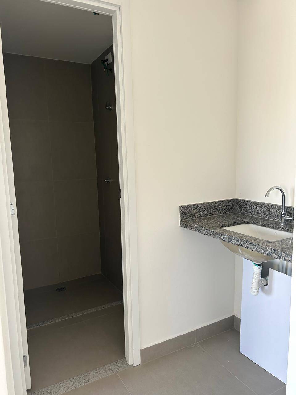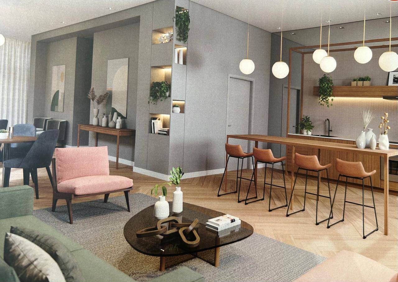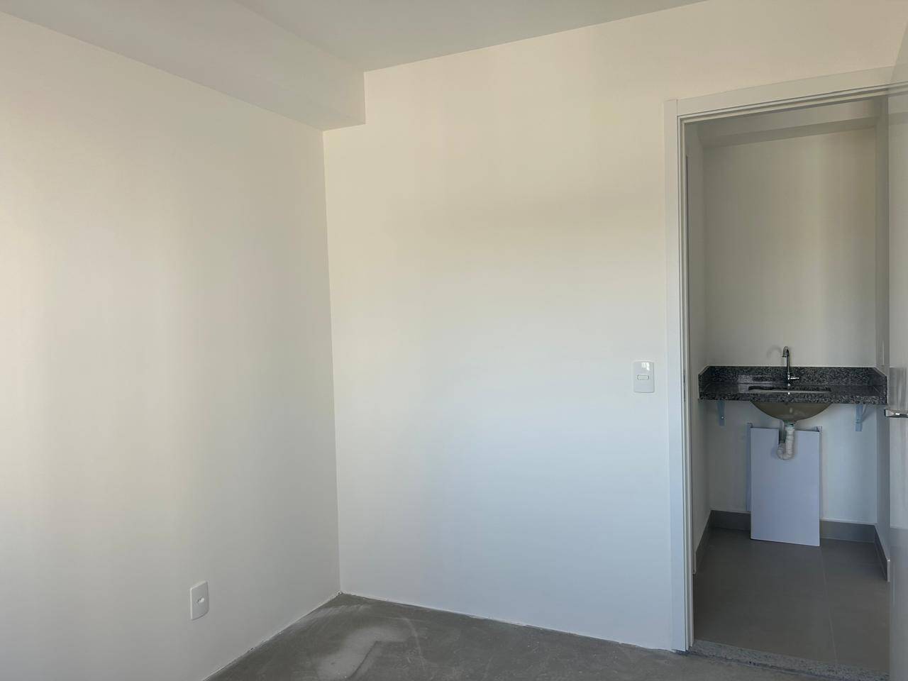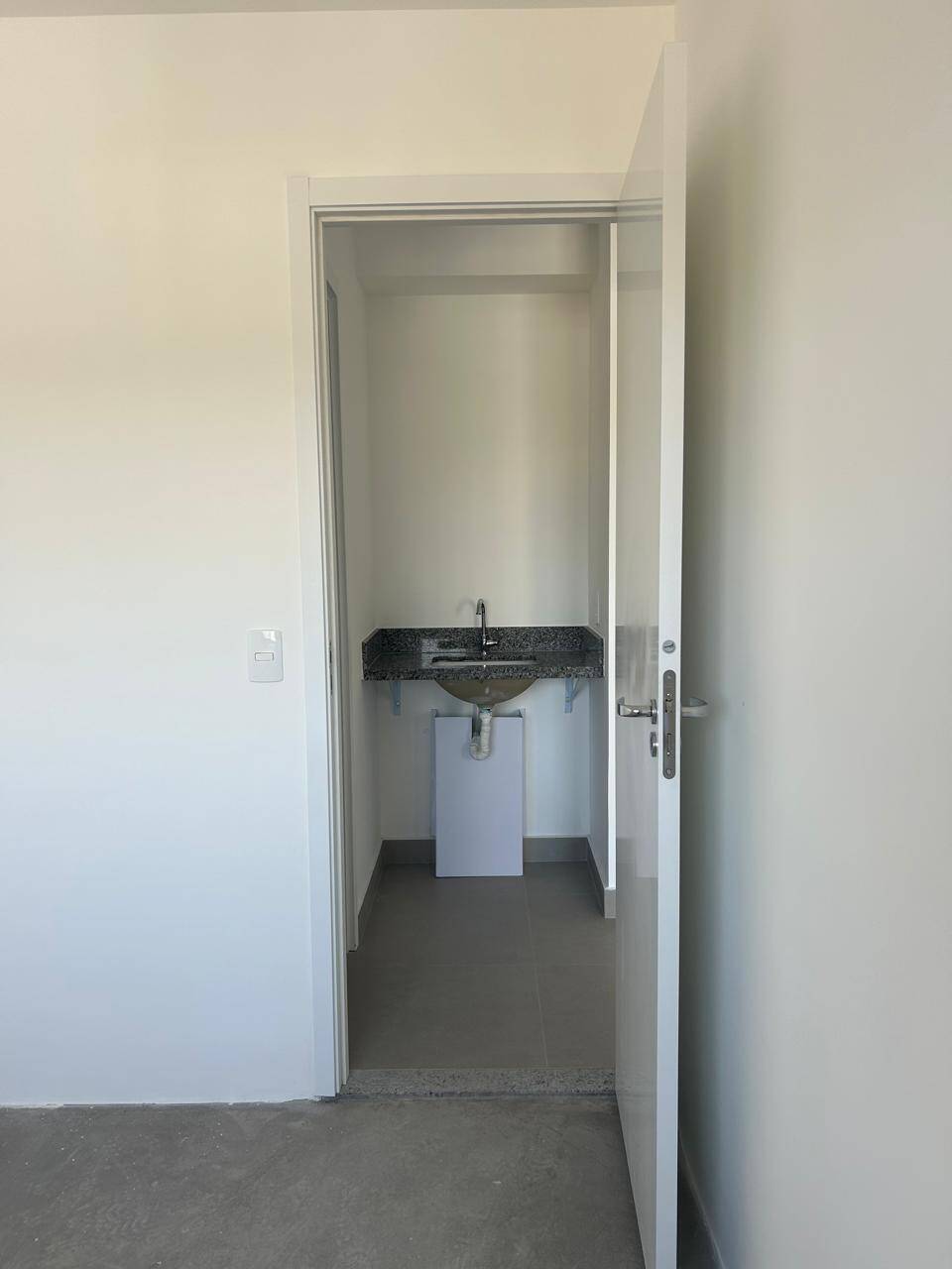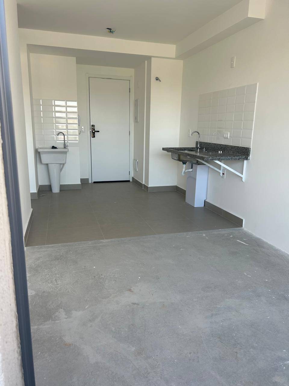 Imóvel novo, living com sacada e 1 dormitório.