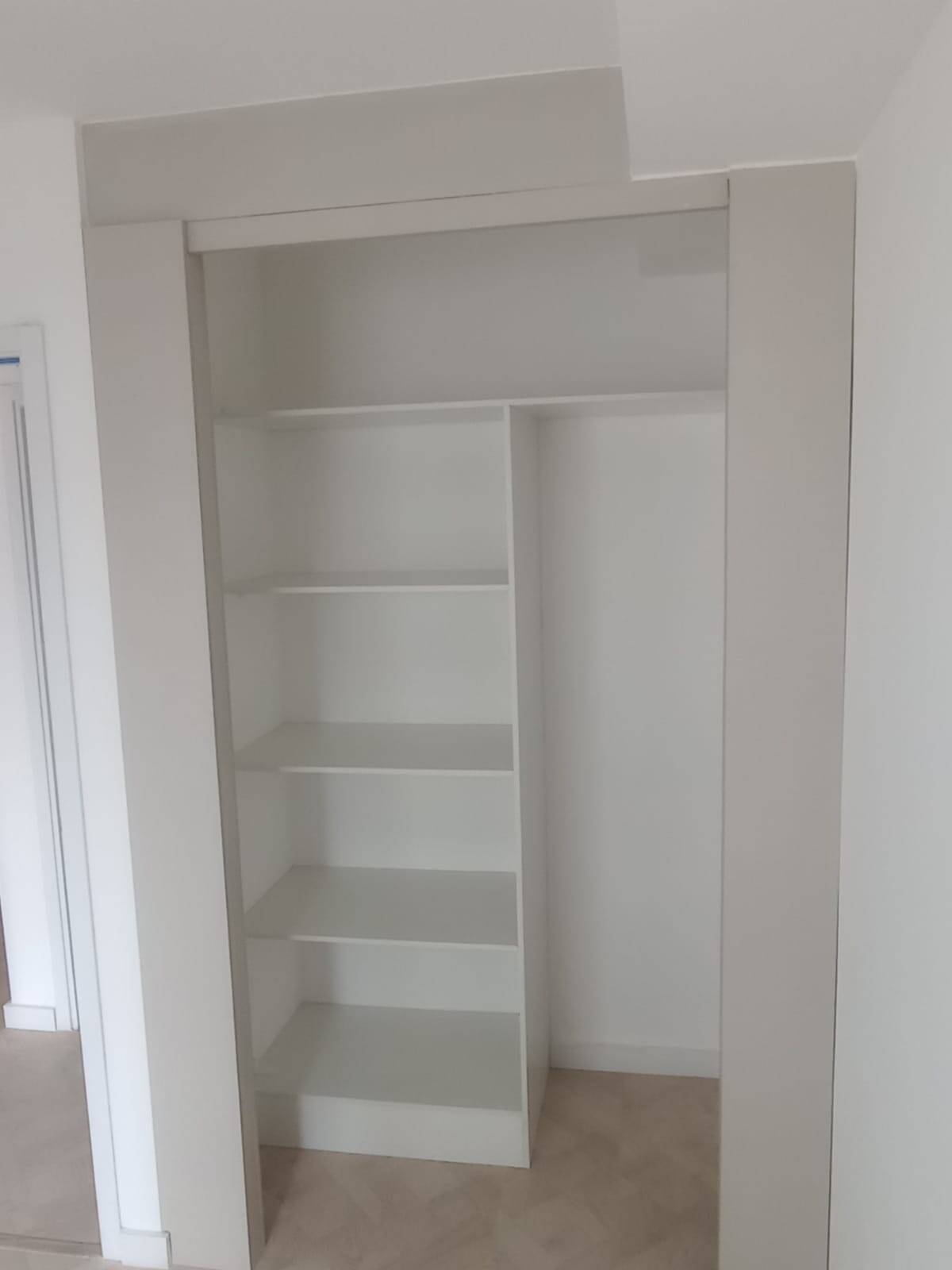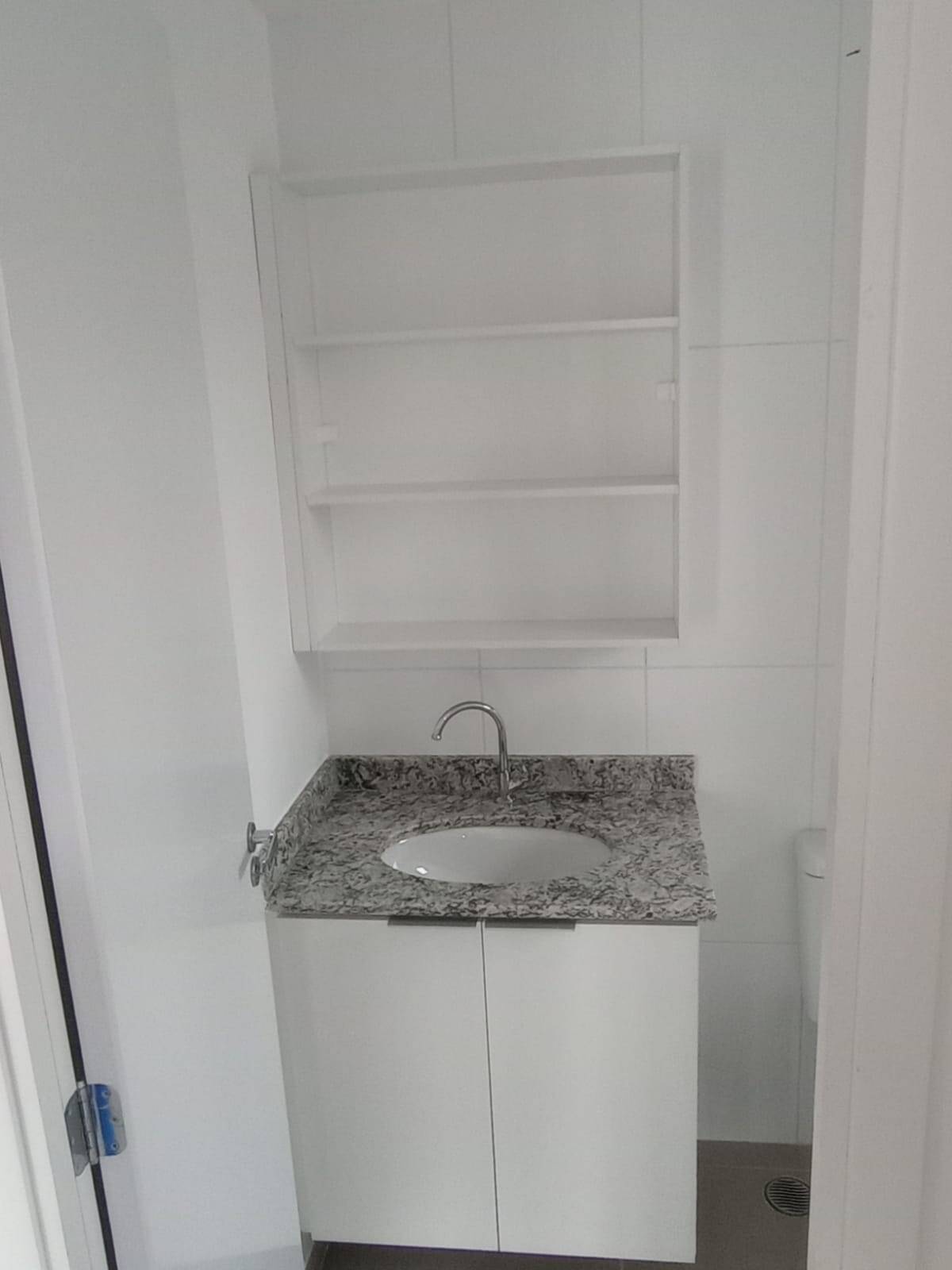 Apartamento com 1 dormitório e cozinha com armários embutidos.