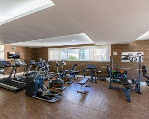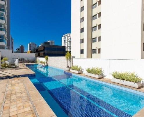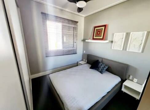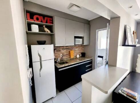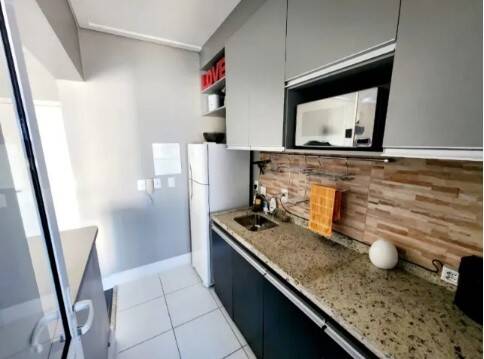 Apartamento em andar alto, todo mobiliado, com 46m2 de área útil, sacada fechada com vidros.