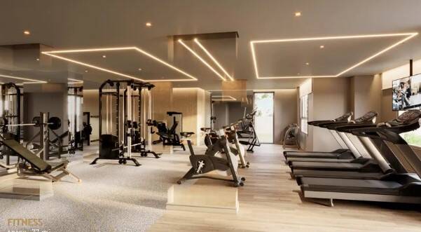 Fitness: Um espaço equipado para atividades físicas.
