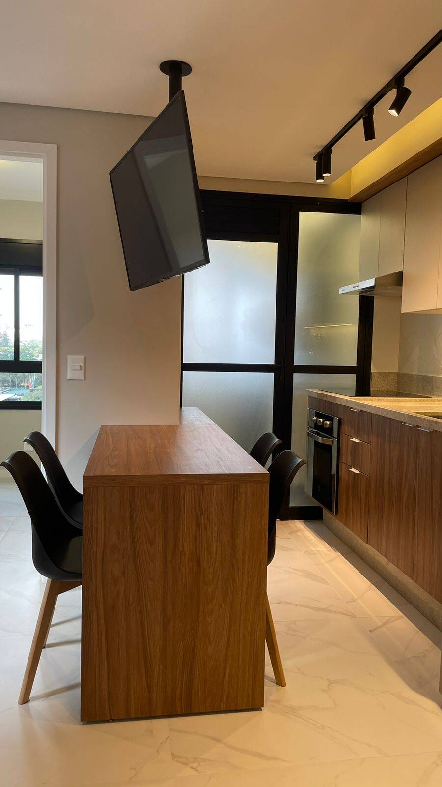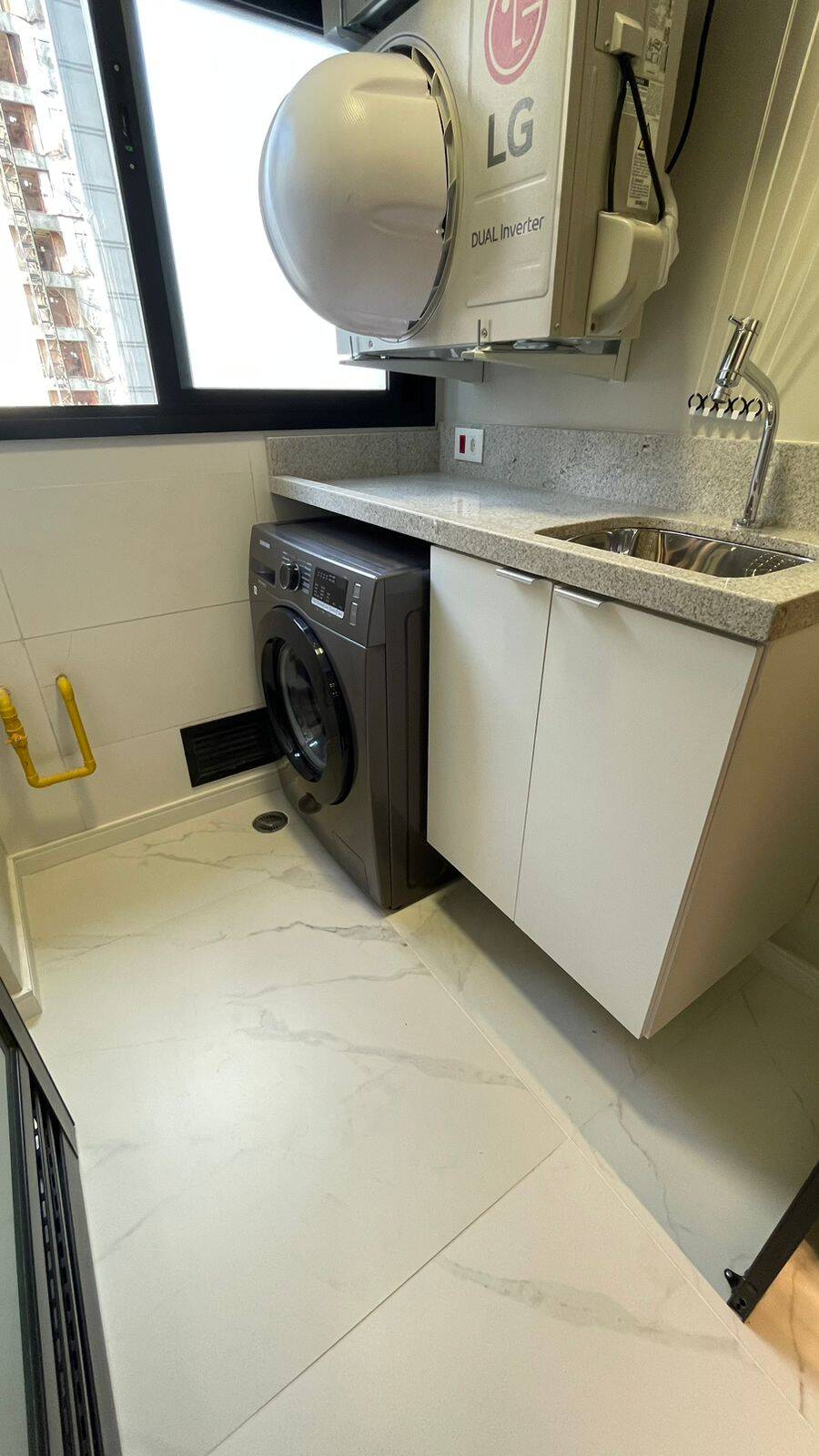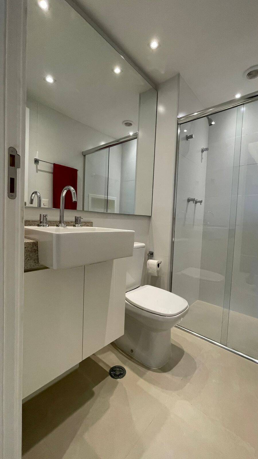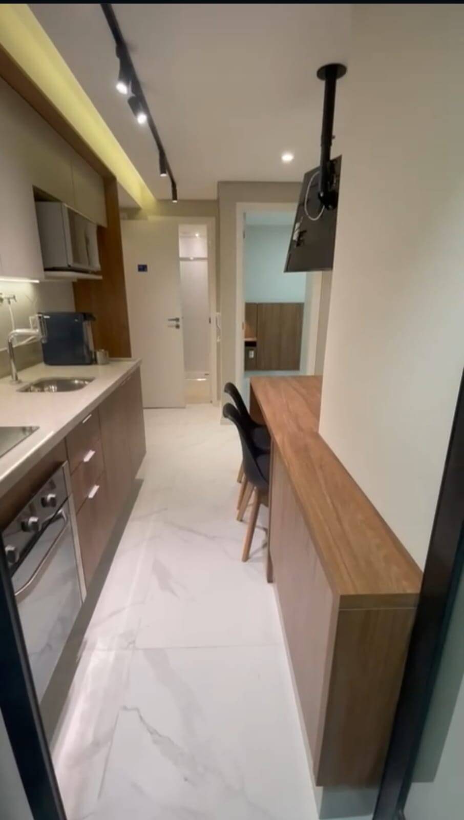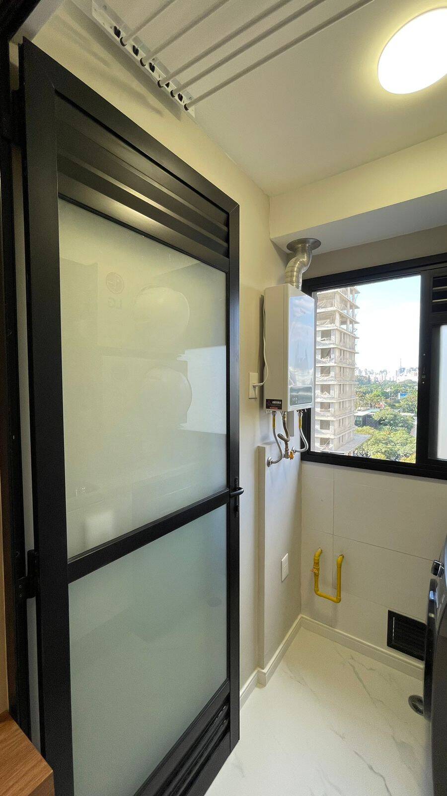 Armários na cozinha, lavanderia, banheiro, Geladeira dúplex, micro-ondas, forno elétrico, cooktop de indução, coifa, filtro de água, máquina de lavar e secar, TV, sofá, Box de cama de casal, iluminação completa com led, torneiras com aquecimento, ar condicionado no quarto e na sala, Box de vidro, amplo espelho no banheiro, varal retrátil. Todos os eletrodomésticos e móveis são novos (sem uso).