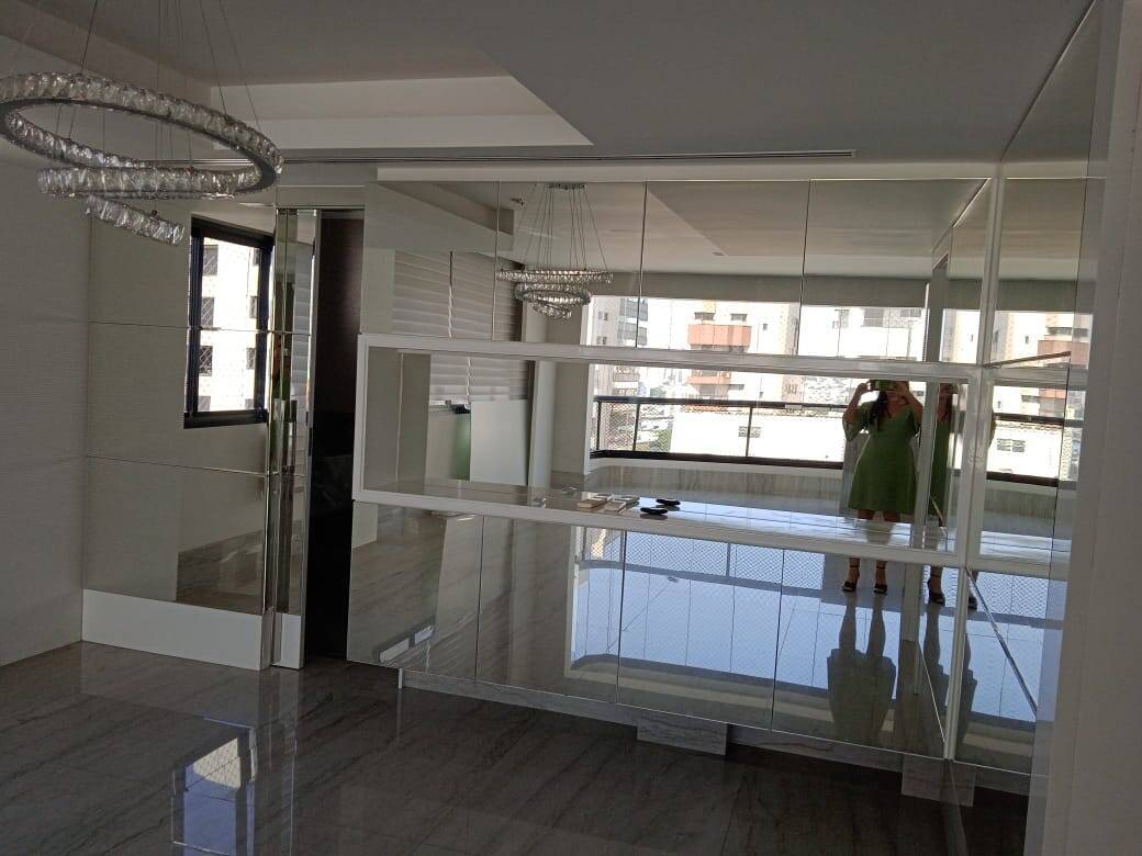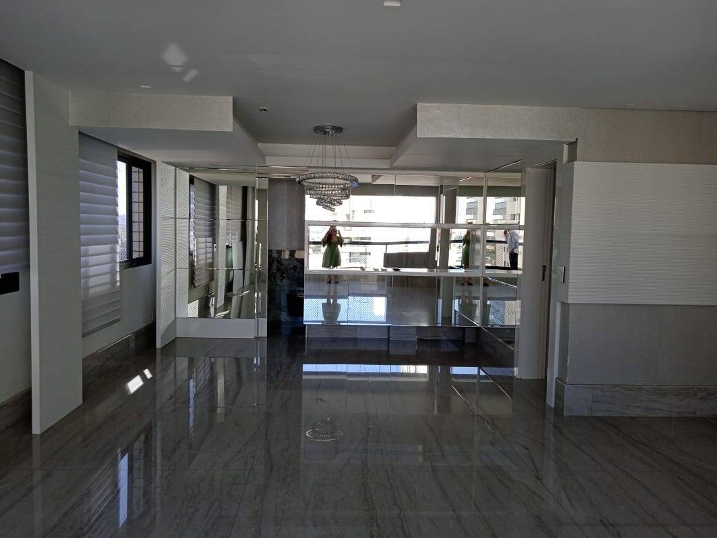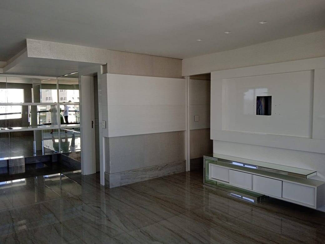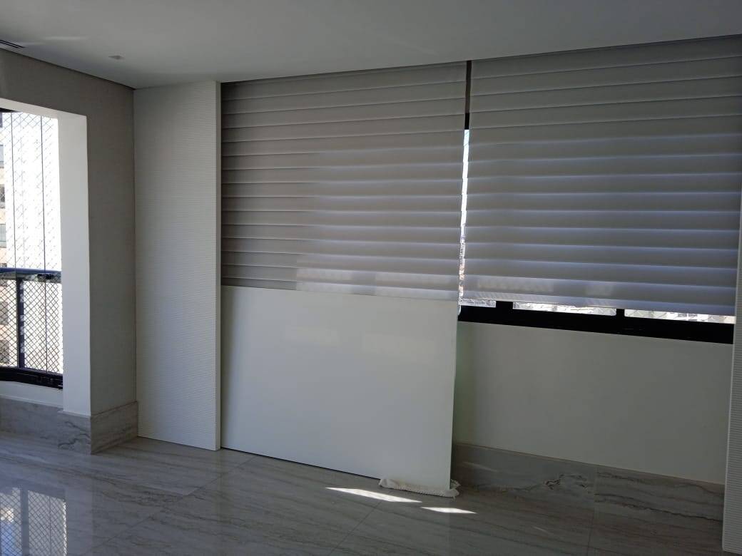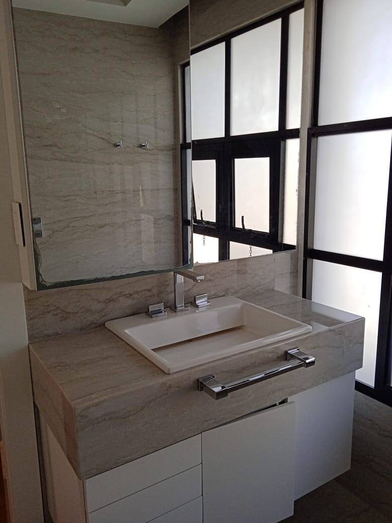 Imóvel todo em pedra granito mármore, com iluminação decorativa até no [LINK_REMOVIDO] de alto padrão. Cortinas elétricas , ar condicionado e porta blindada. Armários embutidos e todo o acabamento em Laca inclusive todas as portas.