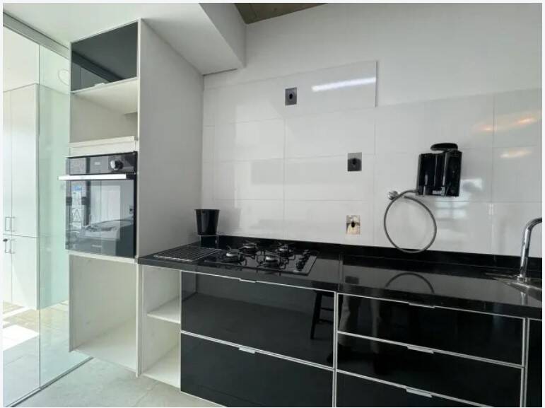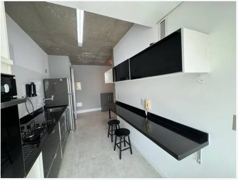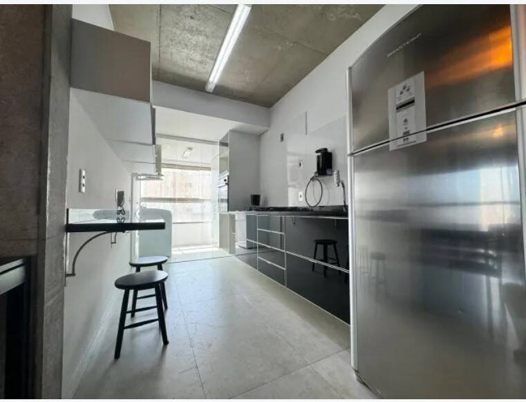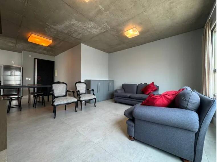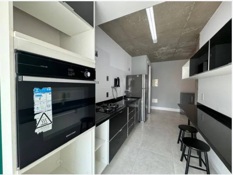 Apartamento mobiliado, decorado, andar alto, amplo living para 2 ambientes com janelas grandes e ar condicionado, cozinha aberta completa com todos os eletrodomésticos, uma suíte com closet e 1 vaga de garagem.