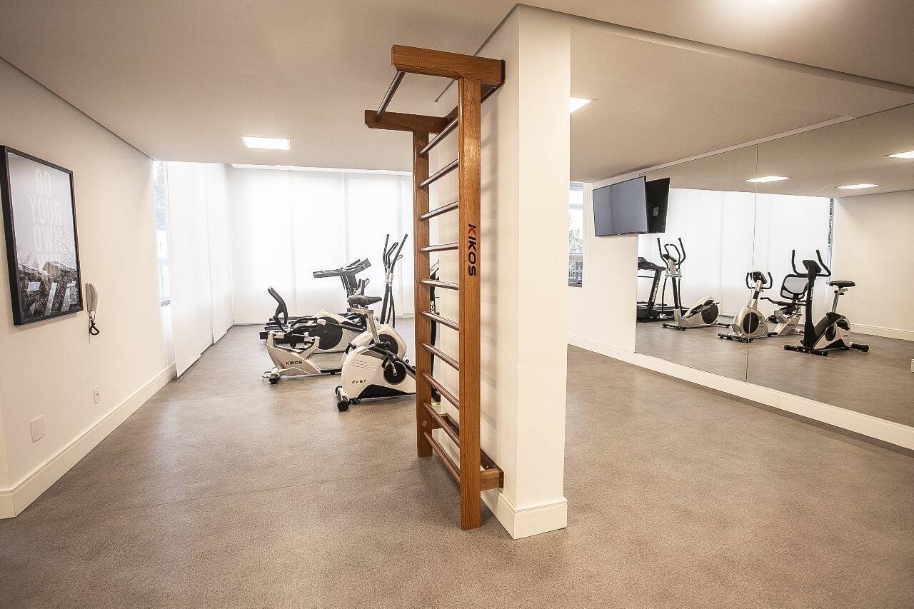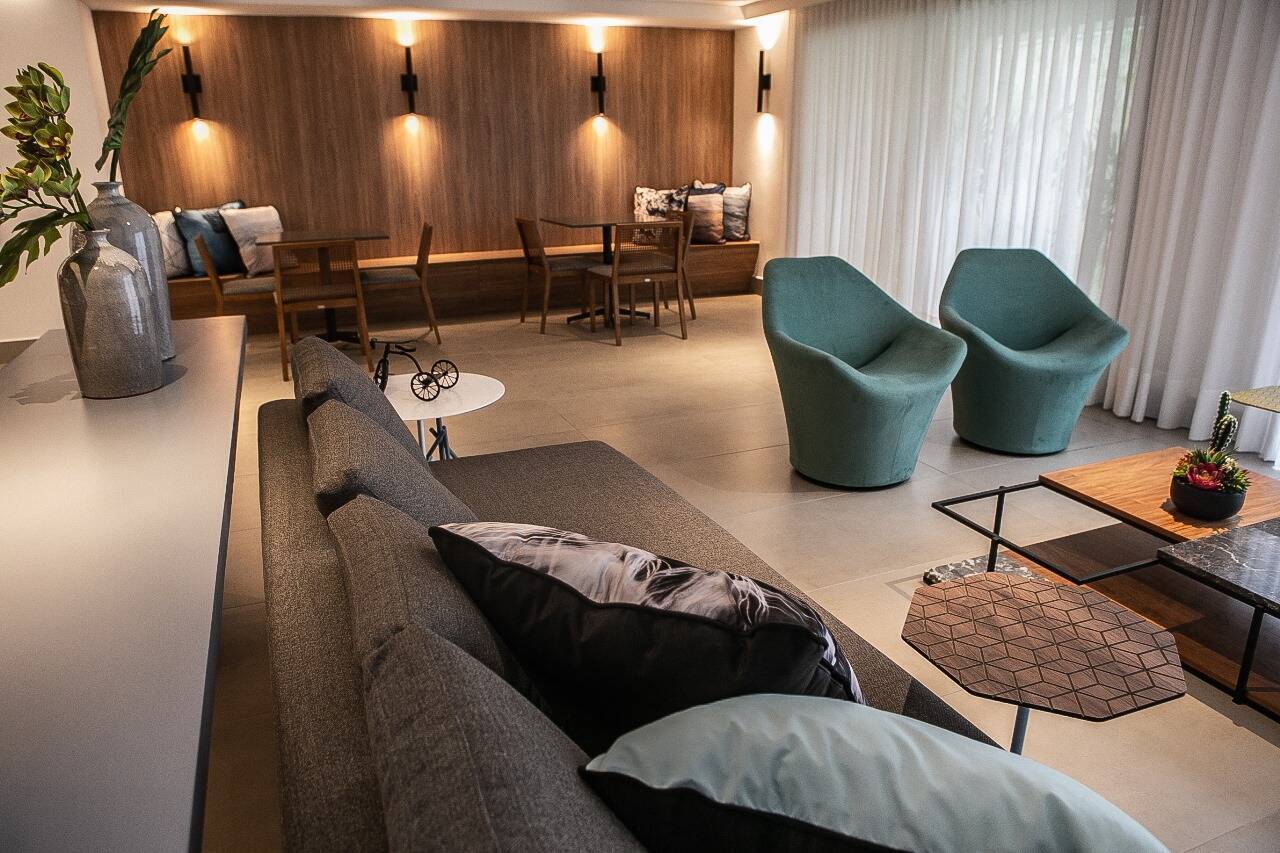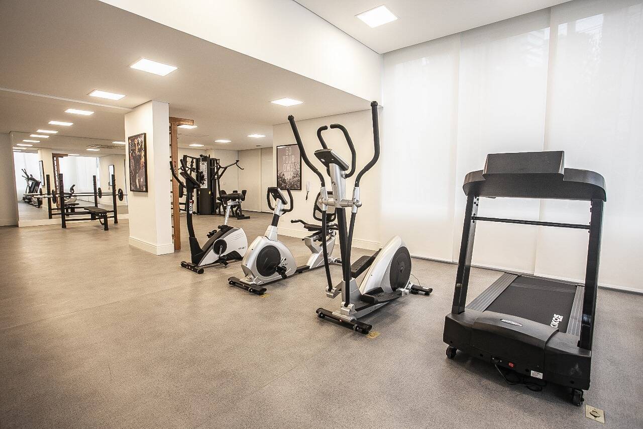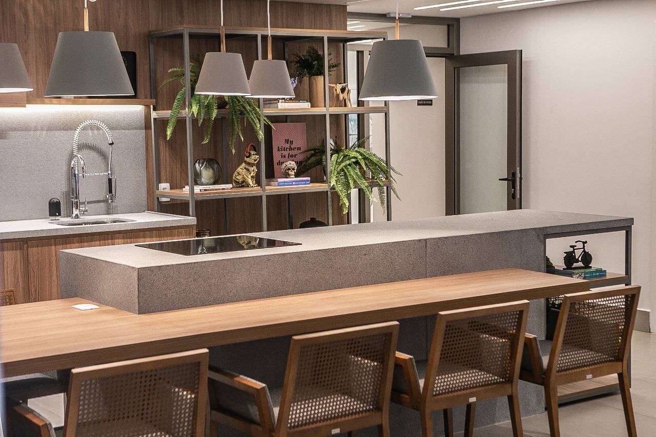 No pavimento inferior , possui amplo living , lavabo , home theater , cozinha americana com ilha , integrada com a sala de jantar . toda mobiliada e decorada . 2 vagas de garagem .