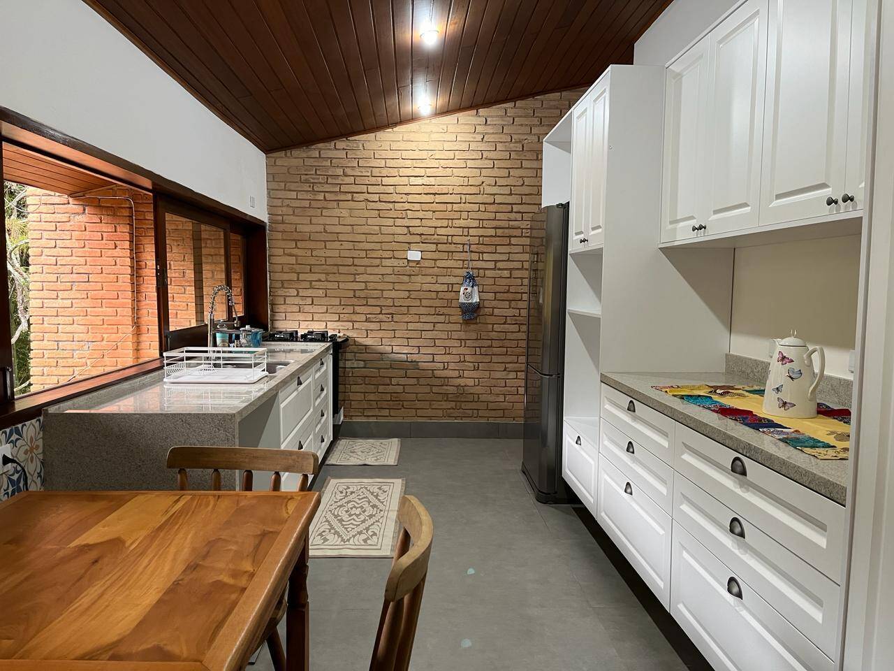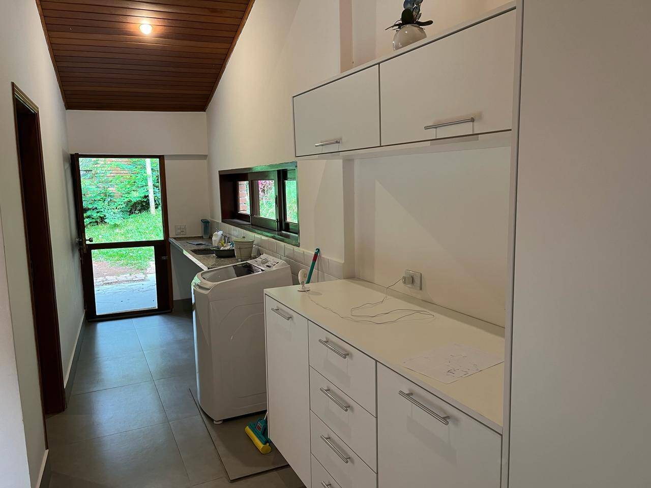 - Cozinha com novos armários design provençal (laca branca), pia e piso em porcelanato (todos novos) e espaçosa despensa (espaço para geladeira e armários);