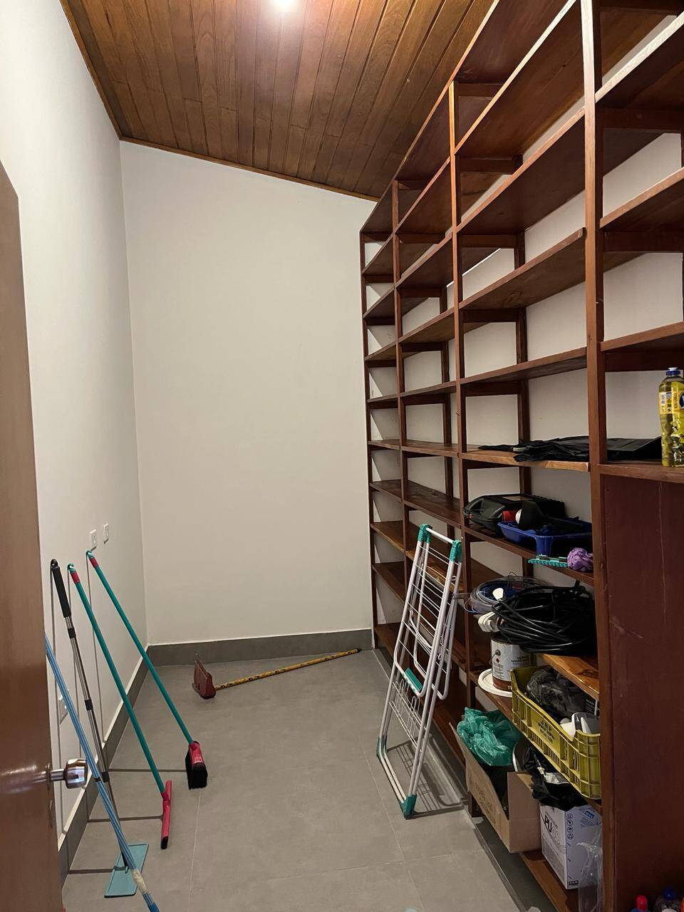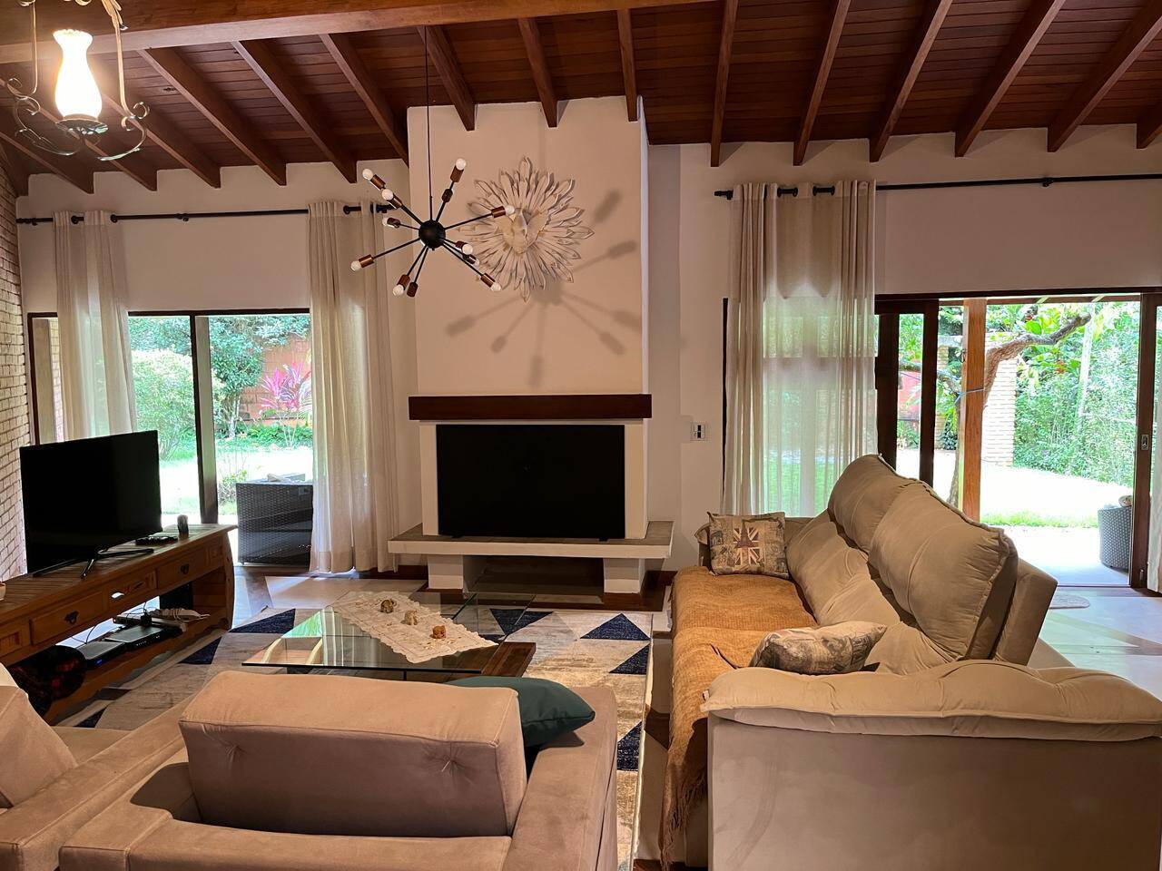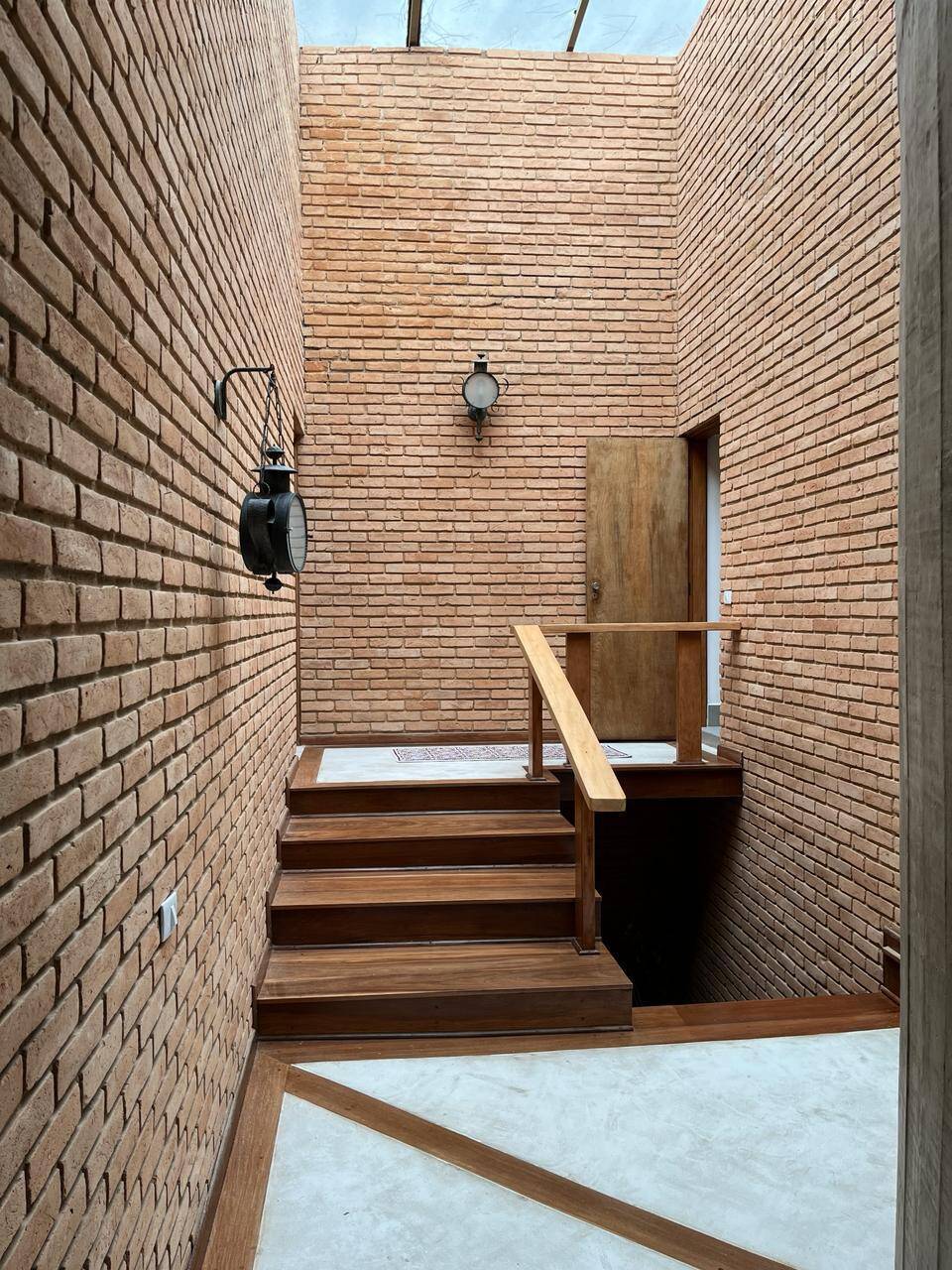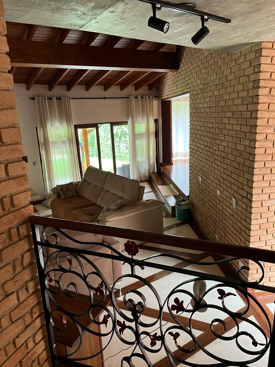 - Área interna com iluminação natural por solarium, pé direito alto e forro de madeira;