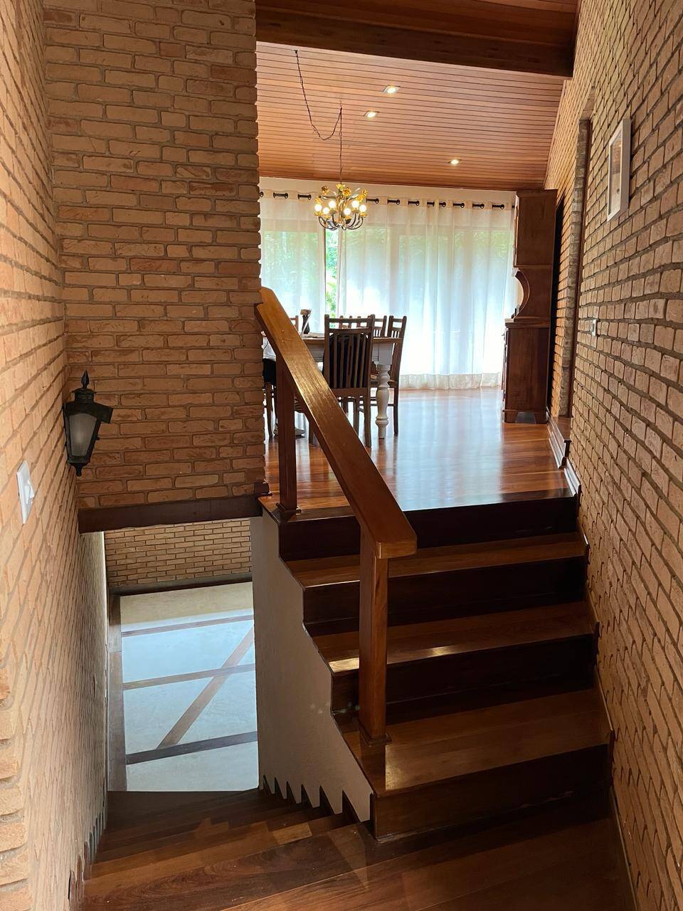 - Sala de estar com lareira e lavabo e sala de jantar com piso em tábua de madeira;