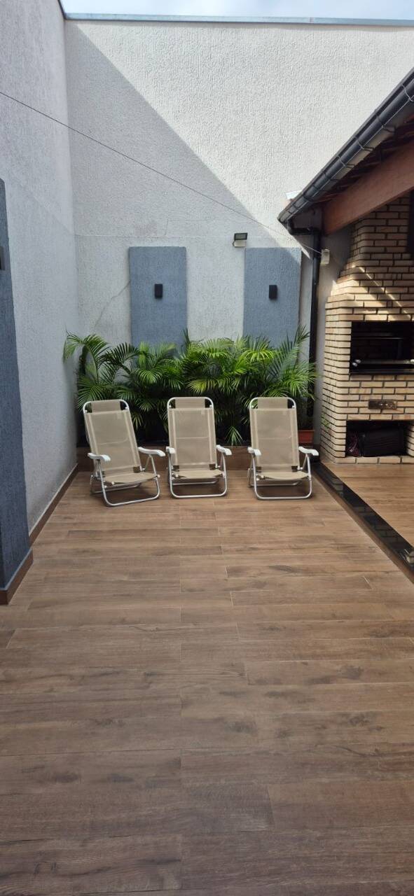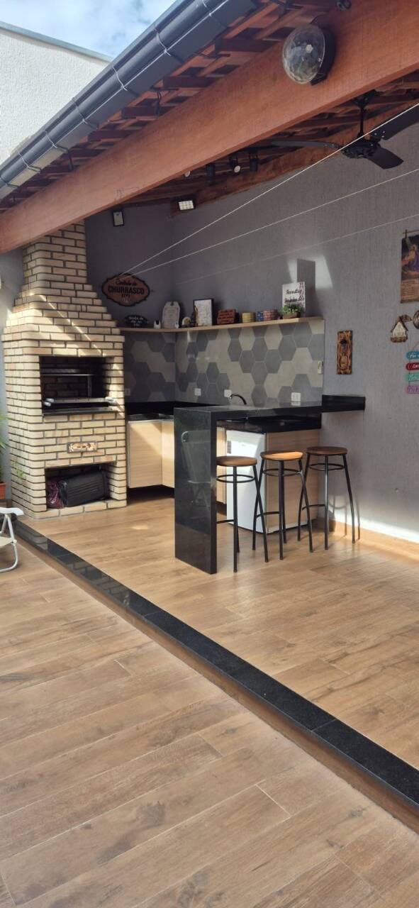 Quintal nos fundos com churrasqueira coberta, balcão em granito e pia