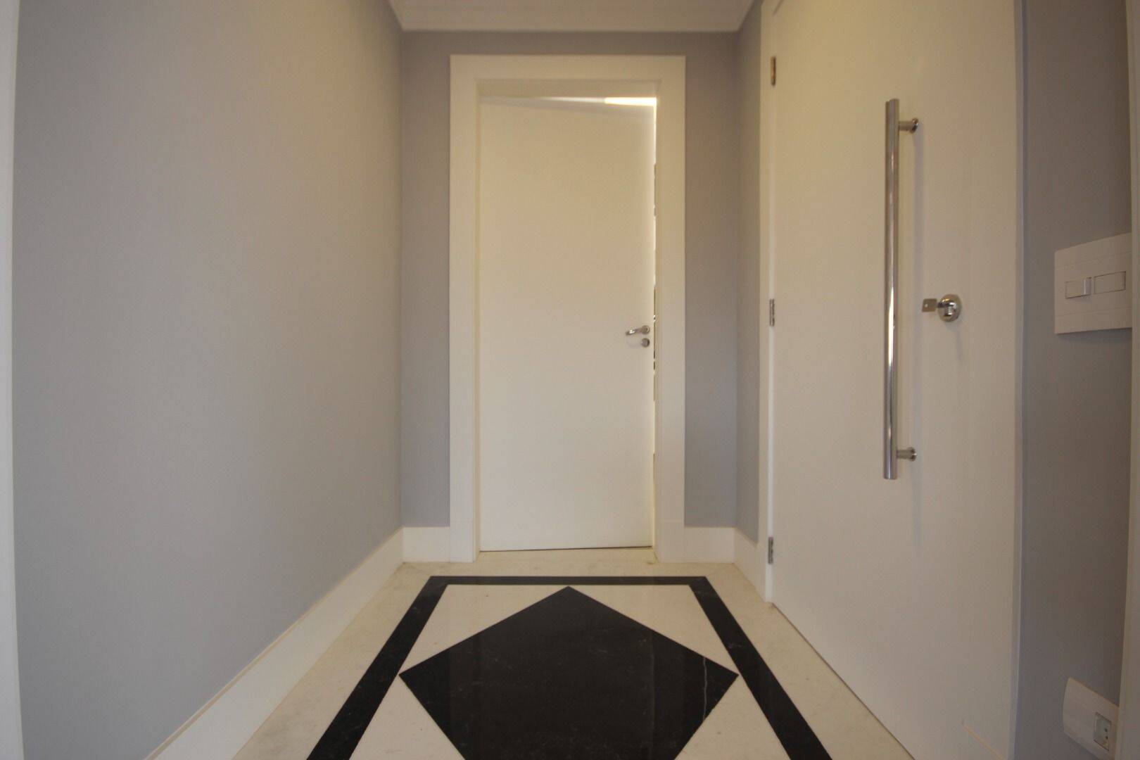 No andar inferior, encontram-se quatro suítes, incluindo uma com closet, um escritório funcional, uma adega climatizada, área de serviço completa, quarto e banheiro para empregada, além da área técnica da piscina e acesso por escada ao piso superior.