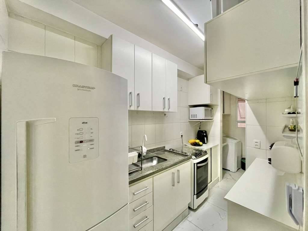 - Cozinha coma planejadados, com bancada em granito preto estelar e pia.