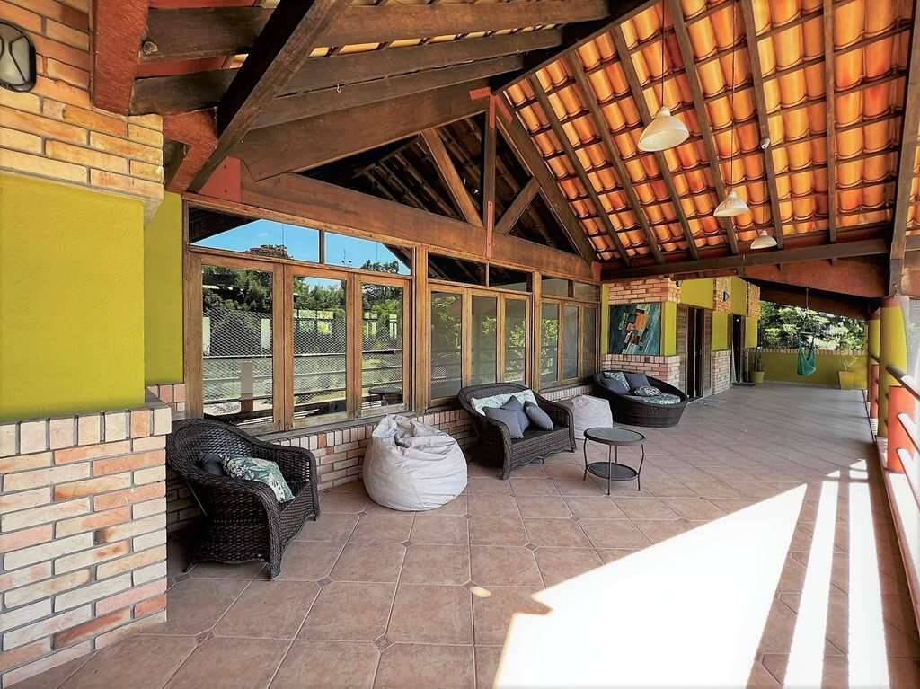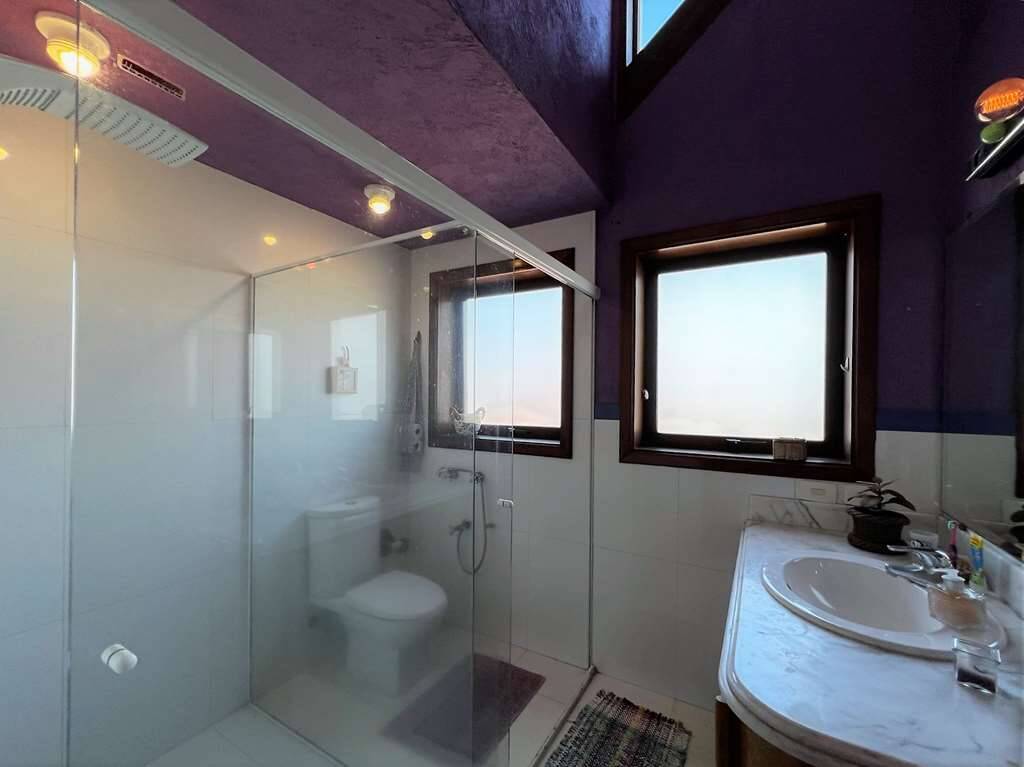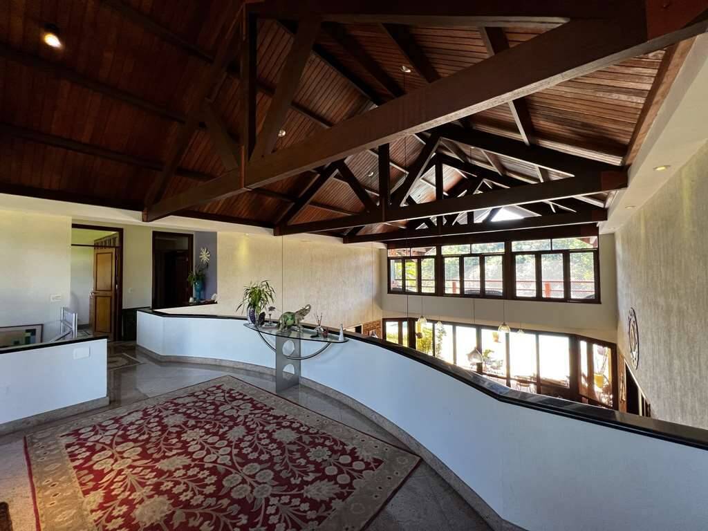 - 5 suítes com armários e ar condicionado. 4 com closets, portas de correr veneziana voltadas para grande varanda interligada, com vista maravilhosa. 3 suítes com mezaninos charmosos, com escadas de madeira. A master com lareira e 2 salas de vestir com 2 acessos.