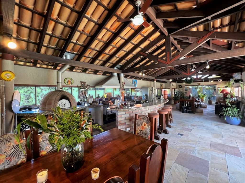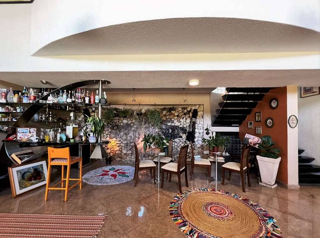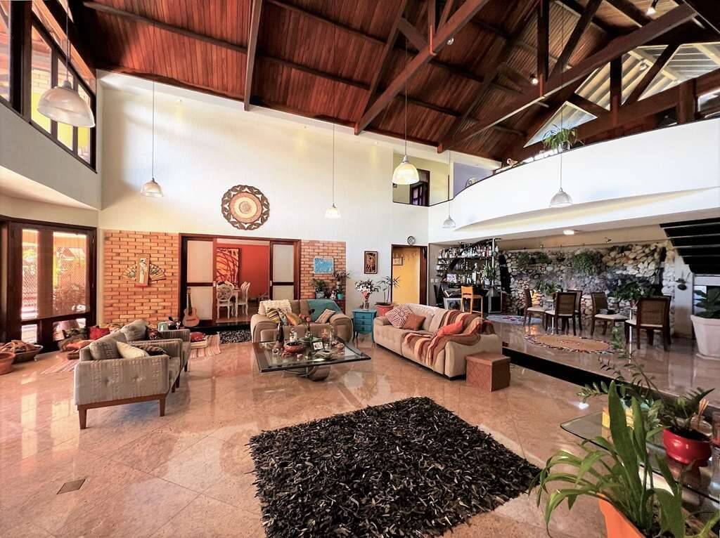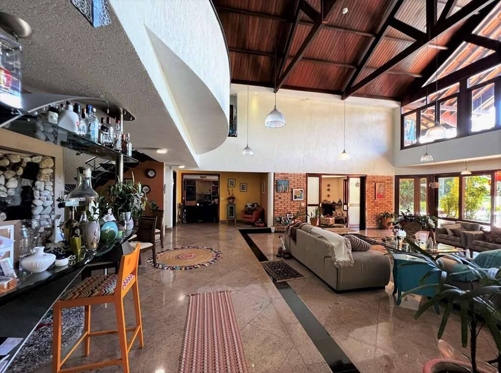 - Estar, bar com parede de pedras e cascata, adega, lareira, jantar, almoço com porta de correr e family room repleto de armários, para home theater e escritório com porta de correr.