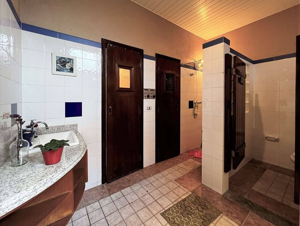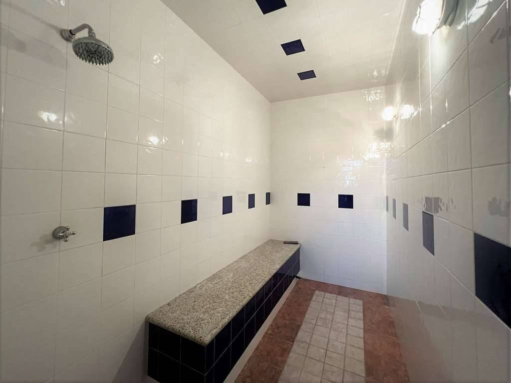 - Grande piscina em alvenaria, maravilhosa, medindo 18m x 8m (de 1m20 a 2m de profundidade) preparada para aquecimento, com 2 escadas internas, 2 duchas, grande solarium e casa de máquinas.