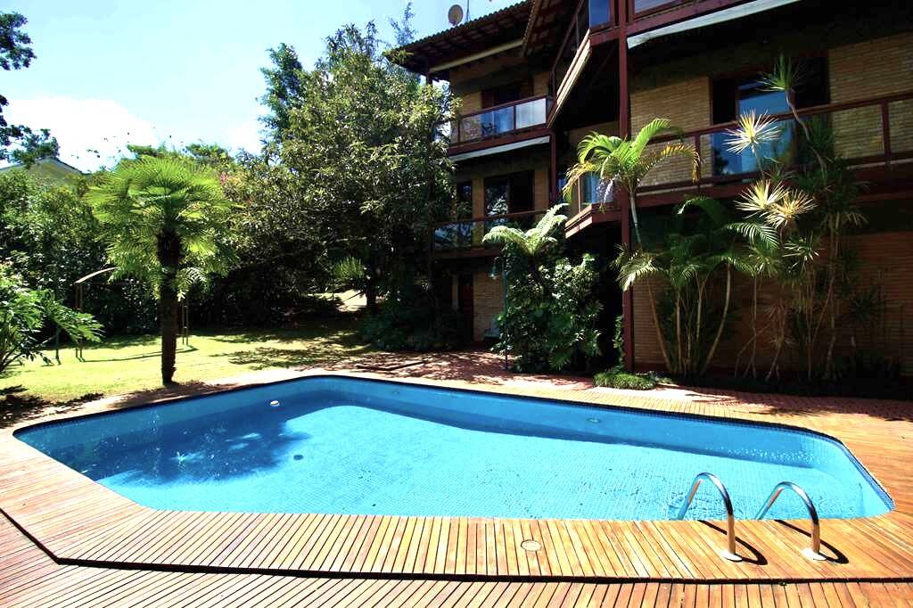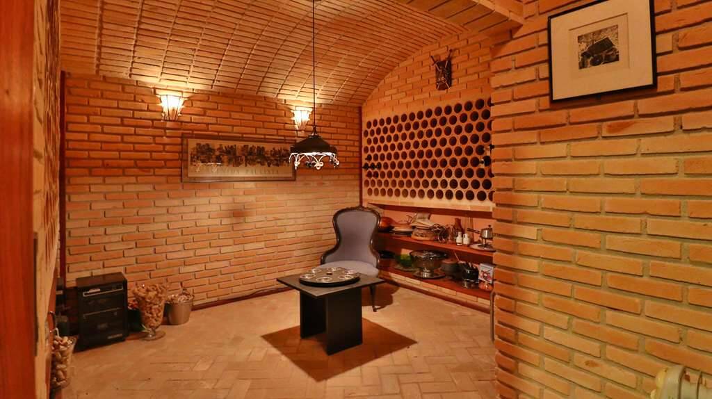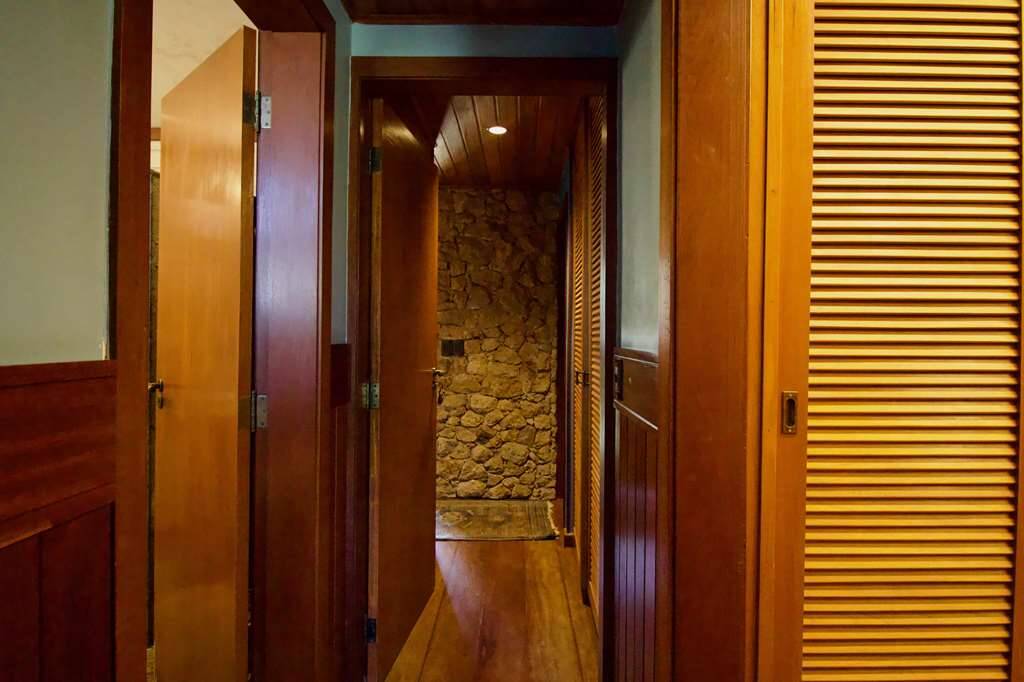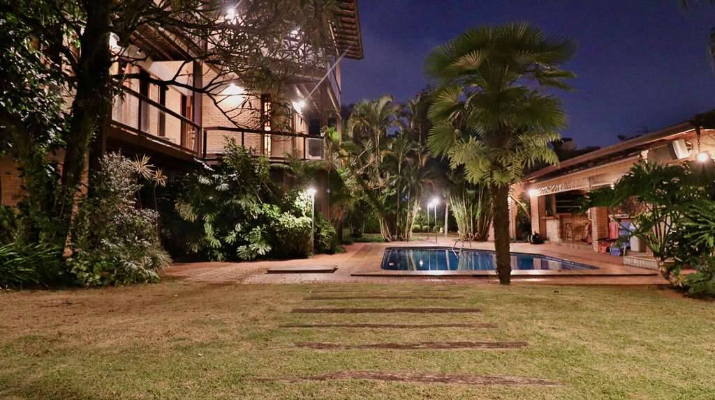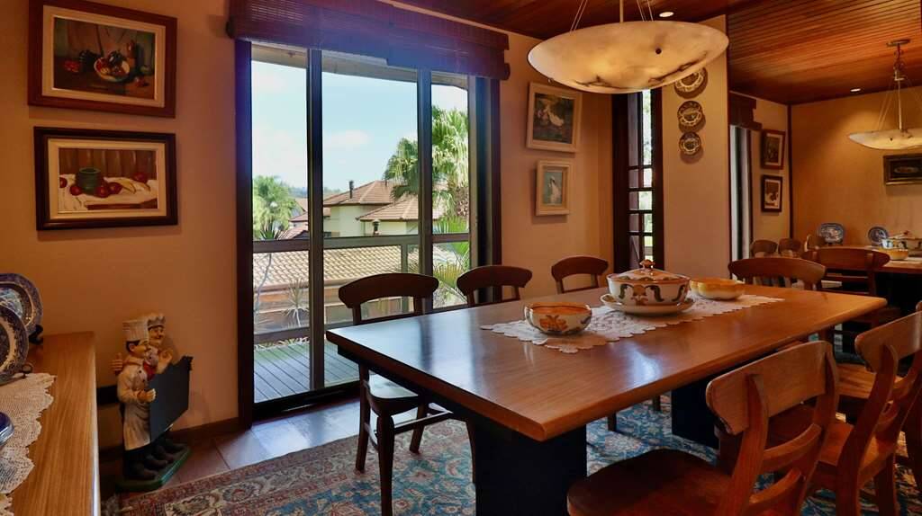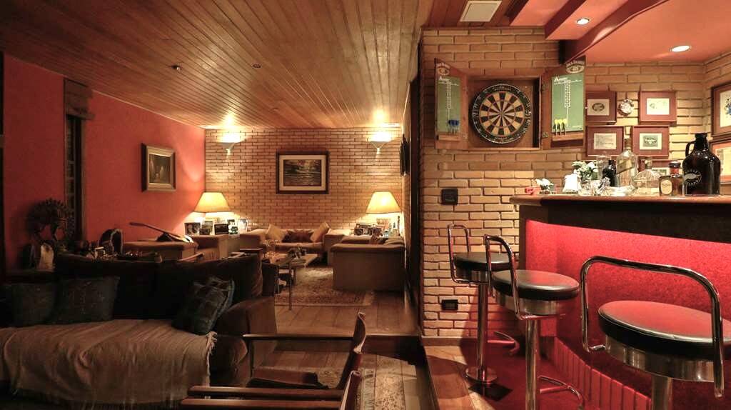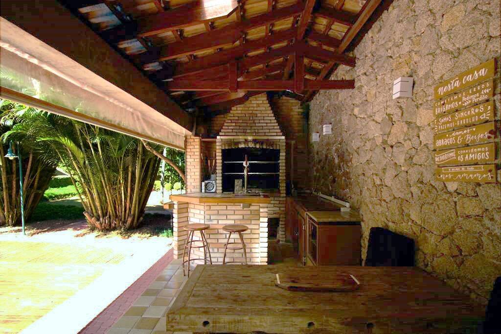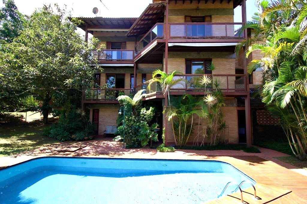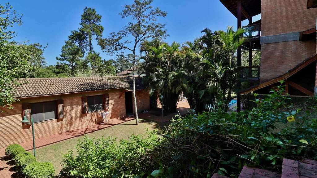 Linda casa atemporal, em tijolos aparentes toda avarandada, de muito bom gosto e ótimos acabamentos. Casa construída para morar. Proprietários arquitetos foram responsáveis pelo projeto e execução. Condomínio fechado Morada dos Pássaros, na Aldeia da Serra, a mais de 1000m de altitude. Segurança total, com infraestrutura completa ao alcance de caminhadas e passeios de bicicleta. Imóvel repleto de armários. Portas e janelas em madeira e vidro. Projeto de iluminação. Pisos em tabuas largas, mármores, cerâmicas, tijolos e decks. Varandas em decks com guarda corpos de vidro e madeira. Jardim formado com frutíferas: Ameixeira, Bananeira, Goiabeira, Mamoeiro, Tangerina, jabuticabeira, Amoreira. Hall de entrada social. Lavabo. Escada de concreto, com corrimão de ferro. Hall íntimo no piso superior. 7 suítes com armários, sendo a master com closet e varanda,enbsp; 5 suítes no corpo da casa (1 delas no térreo) enbsp;e 2 suítes na edícula. Banheiros com pisos e tampos em mármore, espelhos e box de vidro, sendo a master com 2 cubas e hidro. Family room ideal para TV/home theater. Living para 4 ambientes, voltados para varanda com vista. Estar, lareira, jantar e bar. Copa cozinha planejada repleta de armários e gabinetes, bancadas em granito, 2 cubas inox e coifa inox. Área de serviço aberta ensolarada e lavanderia fechada com tanque, armários e banheiro de serviço. Adega grande com teto em abóboda imponente, com capacidade para muitas garrafas e nichos. ANEXO GOURMET integrado à piscina com parede em pedra, churrasqueira, forno de pizza de tijolos, bancadas, balcão e bar. Sauna seca. Piscina de alvenaria revestida com pastilhas de cerâmica, iluminada, deck em Ipê, solarium, ducha e casa de máquinas. ANEXO HÓSPEDES com 2 suítes. Garagem para 8 vagas, sendo 4 cobertas com portões automáticos e banheiro de serviço. Aquecimento central de água: Gás de Passagem. Abastecimento de água: Sabesp. Armazenamento: 5.000 litros. Esgoto: Fossa. (Em breve entrará em funcionamento a Estação de Tratamento de Esgoto, construída no Lago Orion, com elevatória no Residencial Pássaros. Imóvel OCUPADO. Agendar com antecedência