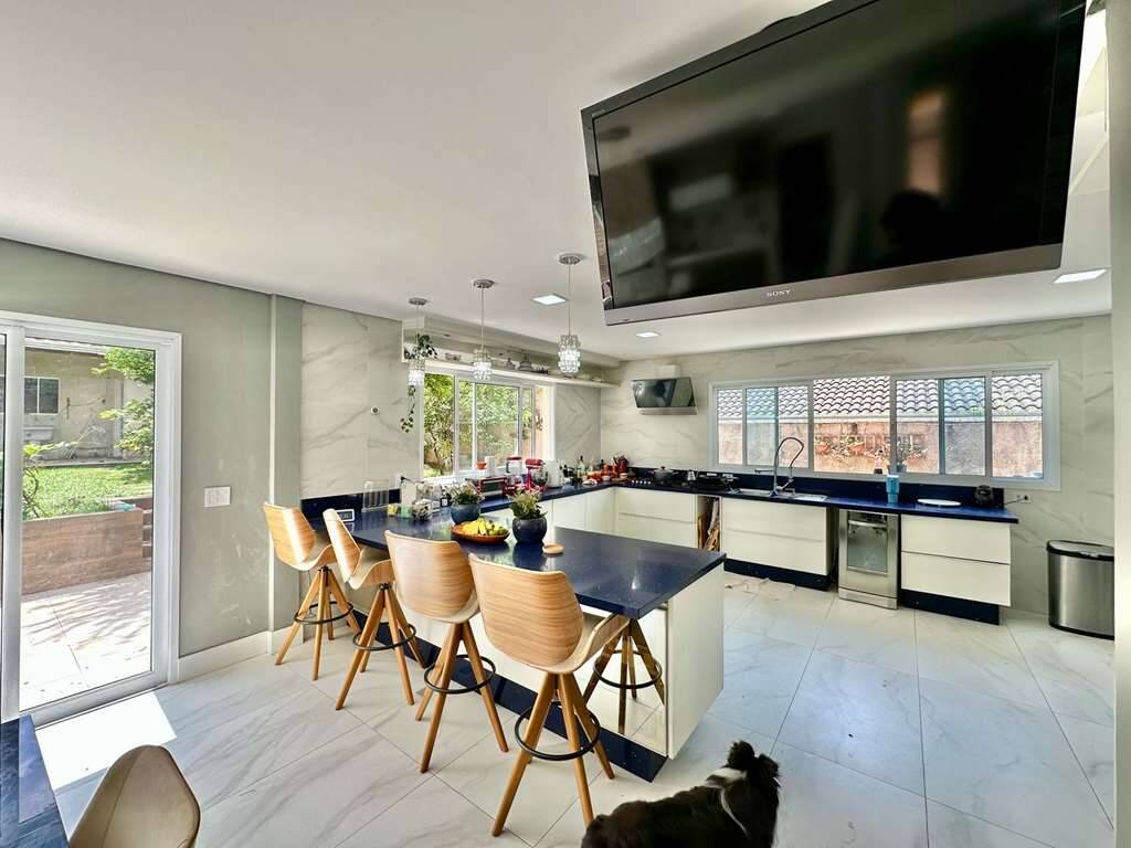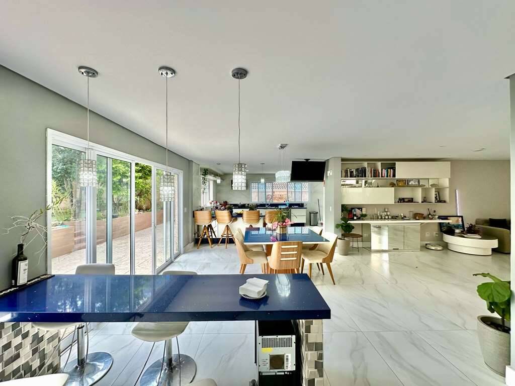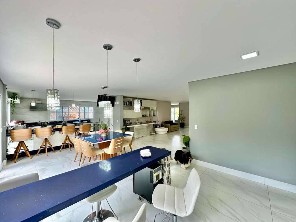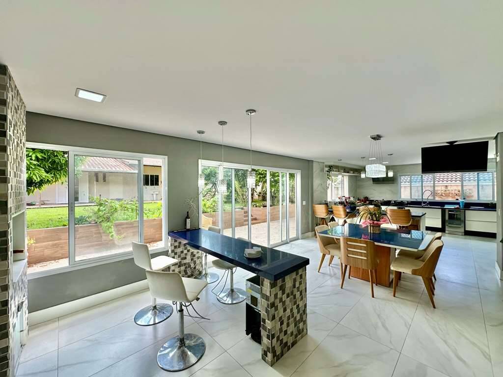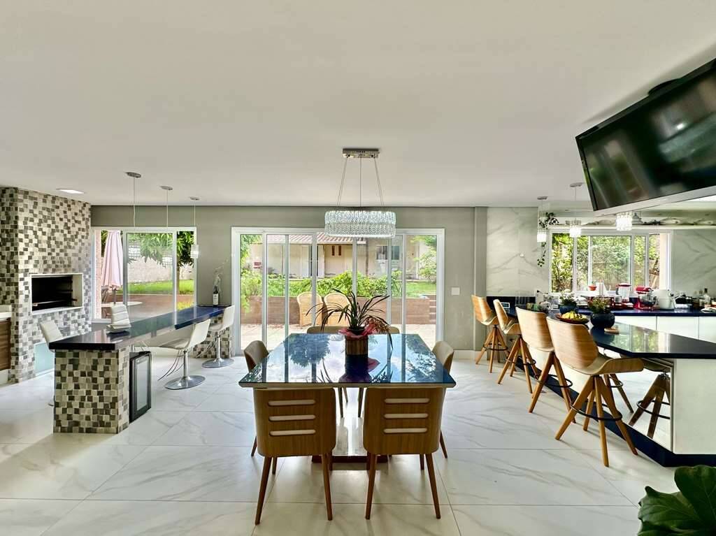 Estar, jogos, bar, jantar, cozinha e gourmet.