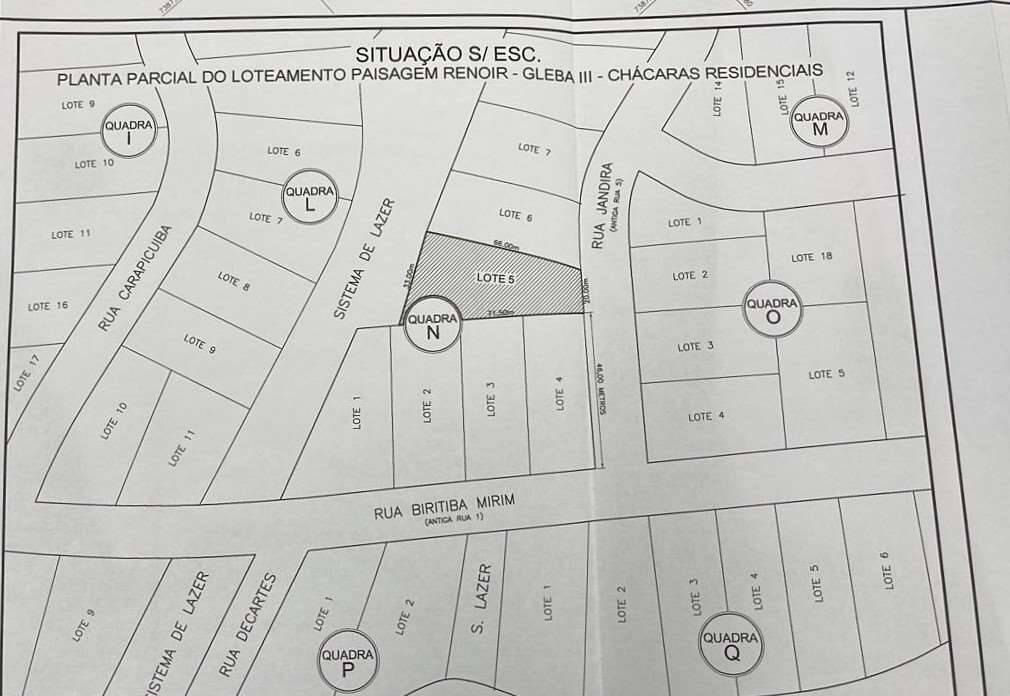 - Endereço do Imóvel: Rua Jandira, 65 (Lote 5 / Quadra N) - Cond. Paisagem Renoir II/III (Bairro postal: Paisagem Renoir), Cotia, SP - CEP: 06715-470