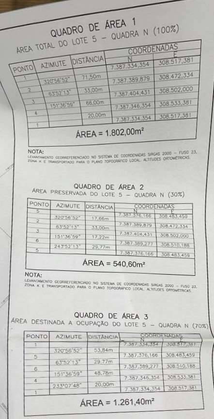 - A.T. DESTINADA A OCUPAÇÃO (70%): 1.261,40 m² - já está limpa e terraplenada / A.T. - PRESERVADA (30%)
