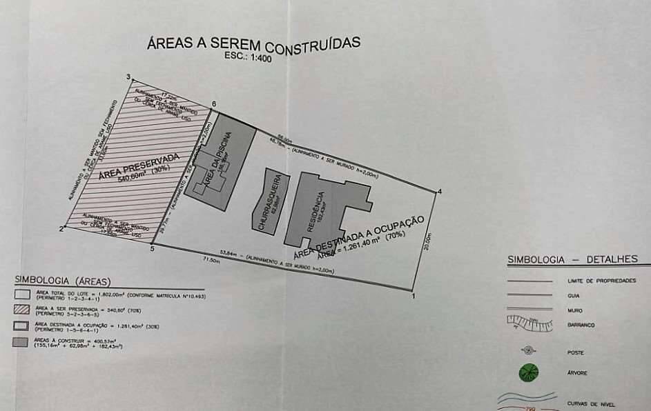 - AT total: 1.802,00 m² (20 m de frente / 33 m fundos / 66 m lateral dir. / 71,50 m lateral esq.)