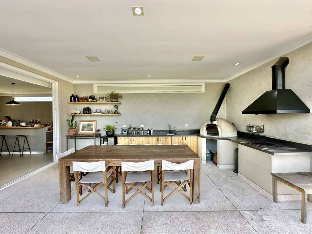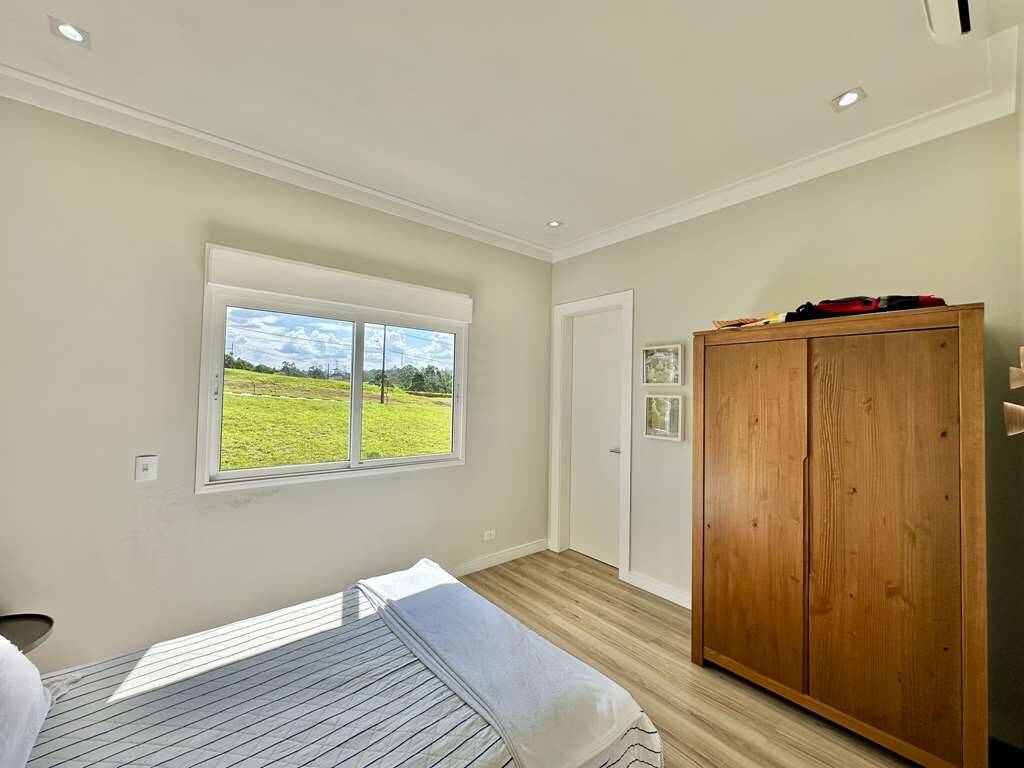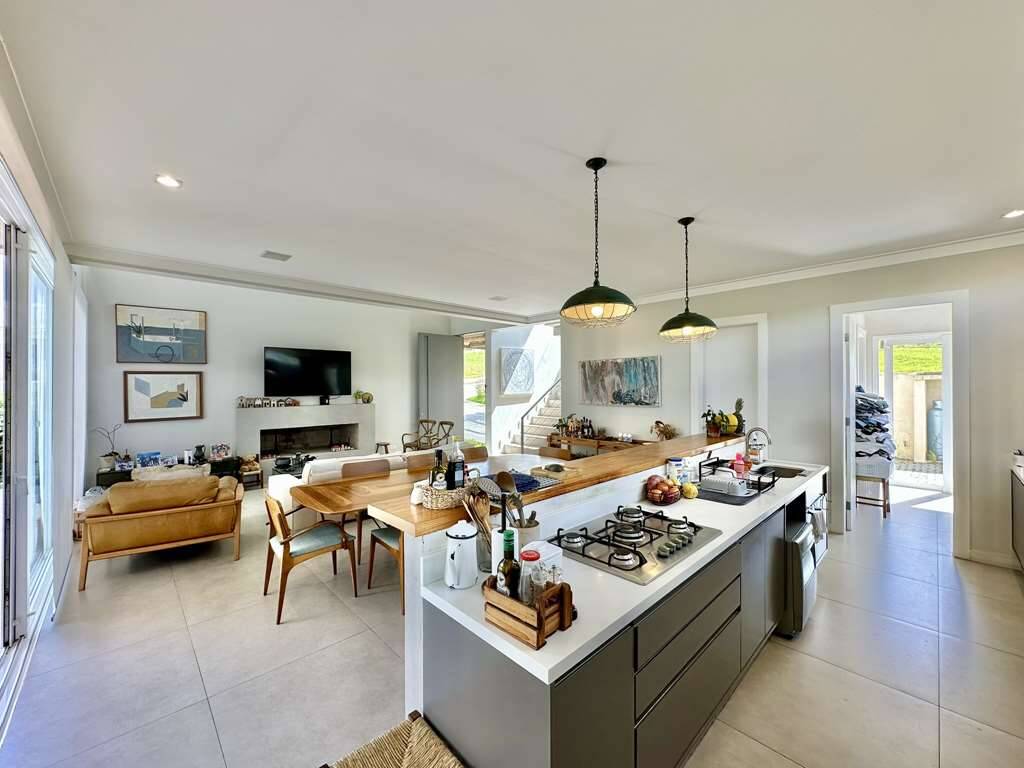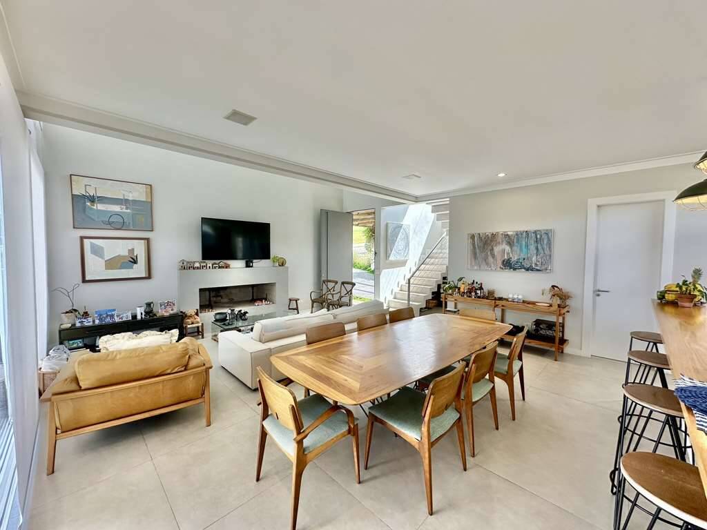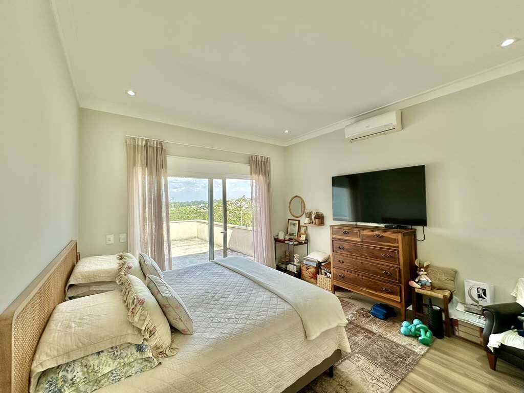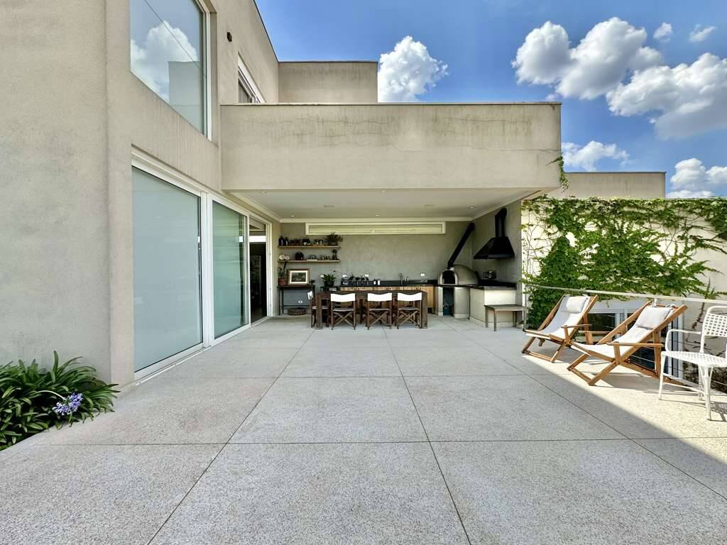 Linda casa moderna integrada com ótimo acabamento. Localização privilegiada de esquina e elevada, em final de rua tranquila, com vista para a natureza. Repleta de armários. Portas e janelas em alumínio e vidro, com persianas elétricas nos quartos. Pisos em porcelanato, revestimento de madeira e fulget. Projeto de gesso e iluminação. Louças e metais de qualidade. 3 acessos: social lazer e serviço. Casa com pé-direito alto, envidraça, ensolarada, bem arejada e iluminada. Hall social com porta pivotante. Lavabo com tampo em Travertino. Escada de alvenaria com guarda corpo de metal e cabos de aço. 4 SUÍTES com armários e ar condicionado 2 suítes no piso superior, sendo a master com closet, grande terraço e vista. 2 suítes no piso inferior voltadas para a piscina, com hall íntimo ideal para TV, estudos ou escritório. Banheiros com tampos em mármore branco prime, espelho, box de vidro e nichos, sendo 2 com claraboias e a master com 2 cubas e grande espelho. Living pra 4 ambientes integrados à cozinha e varanda gourmet. Estar, TV, lareira jantar / bar. Cozinha planejada com bancada em mármore branco prime, gabinetes, ilha, balcão e despensa. Área de serviço com depósito, lavanderia com tanque e ótimo quintal ensolarado, com banheiro de serviço. Varanda gourmet com vista, churrasqueira, forno de pizza, bancada, pia inox e gabinetes. Piscina com 7m x 3,5m, iluminada, com borda infinita, prainha, solarium e vista. Prepara para receber unidade de aquecimento. Redario para 3 redes com vista. Suíte de serviço com acesso externo. Garagem para 6 vagas, sendo: 2 vagas em cima, pela na entrada social, com pergolado + 4 vagas em baixo, sendo 2 cobertas na garagem c/ portão automático e 2 externas. Oficina ao lado da garagem, com banheiro de apoio. Aquecimento central da água: Gás de passagem. Abastecimento de água: Sabesp. Imóvel OCUPADO. Agendar com antecedência mínima de 24 horas via mPm.