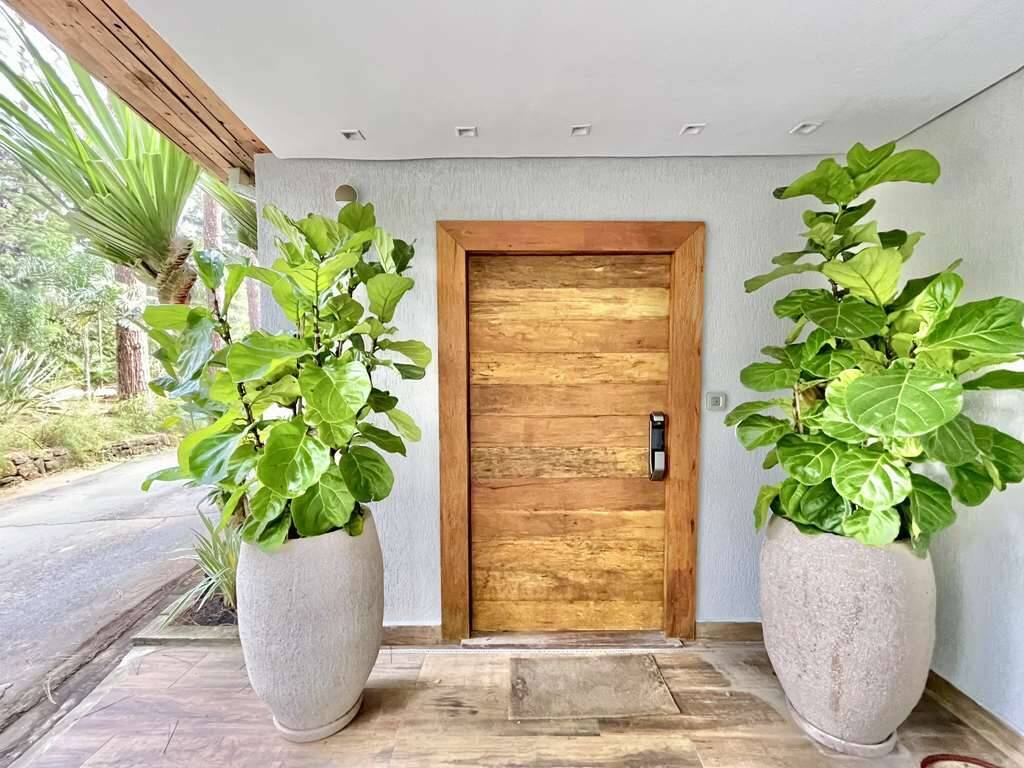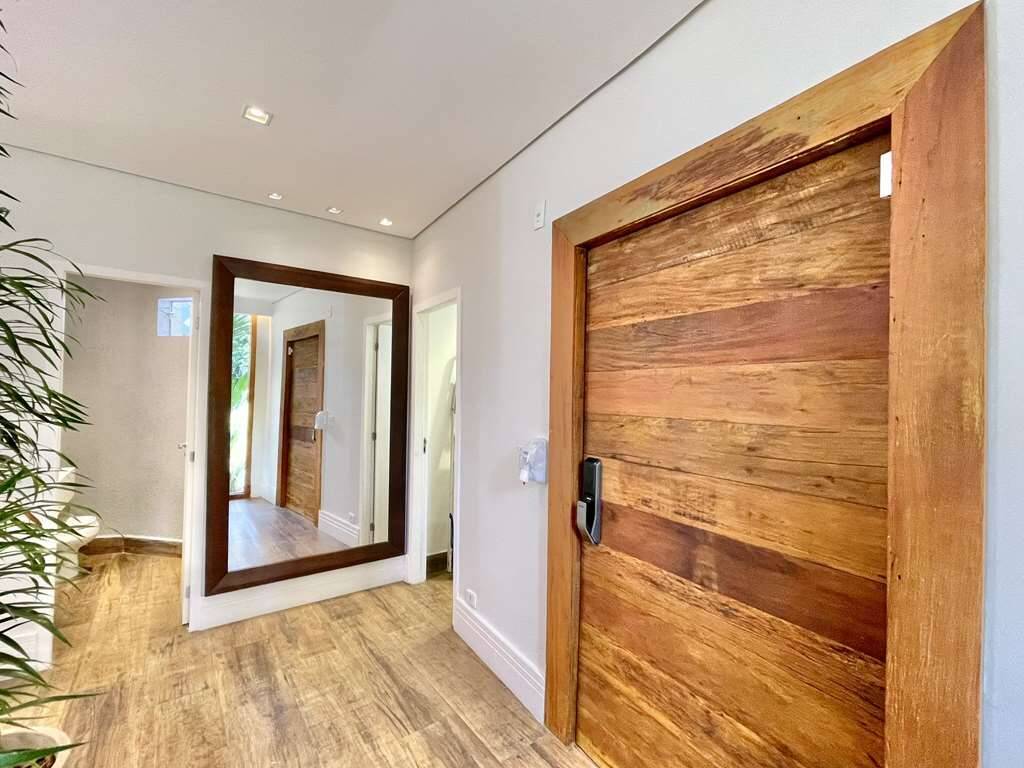 - Linda porta social com revestimento em madeira de demolição e fechadura eletrônica.