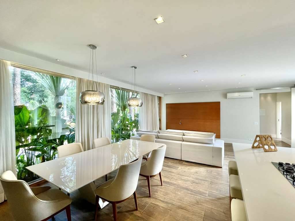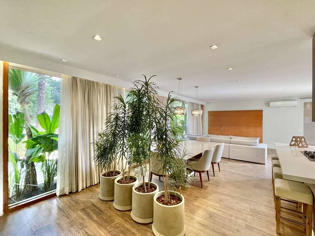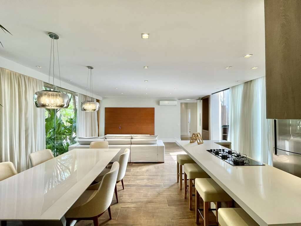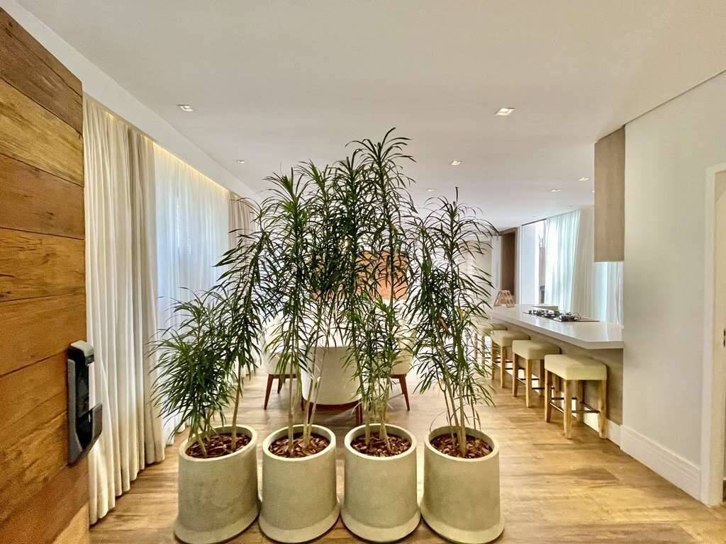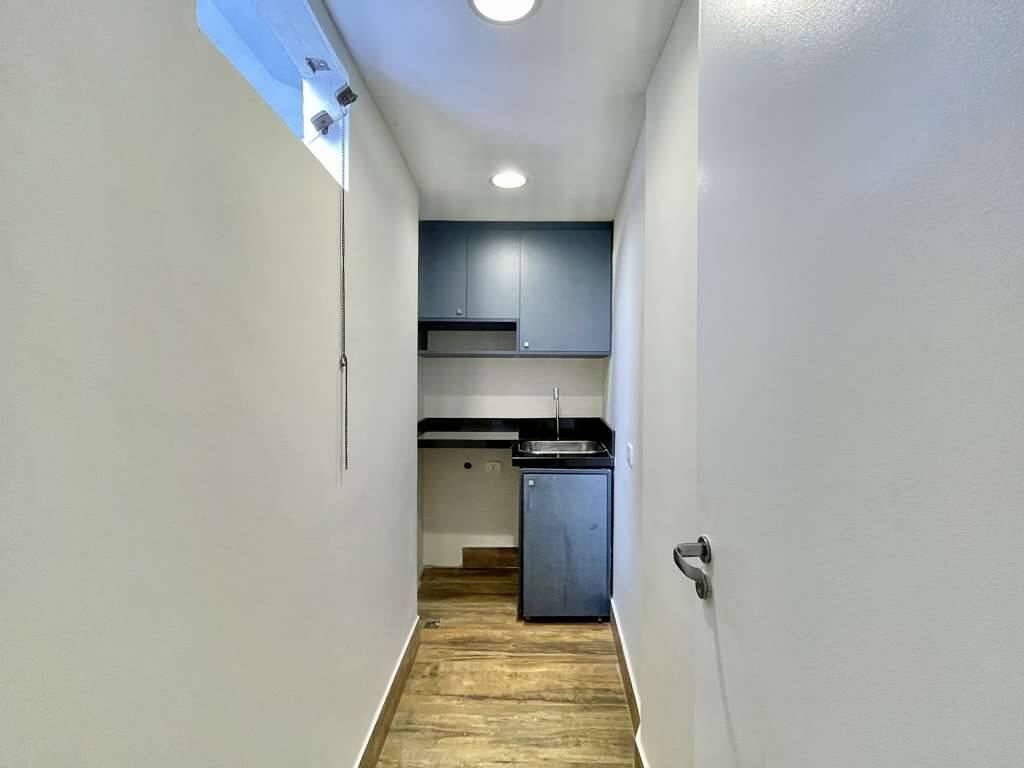 - Sala e cozinha integradas, com ar condicionado e parede voltado para alameda interna, totalmente envidraçada.