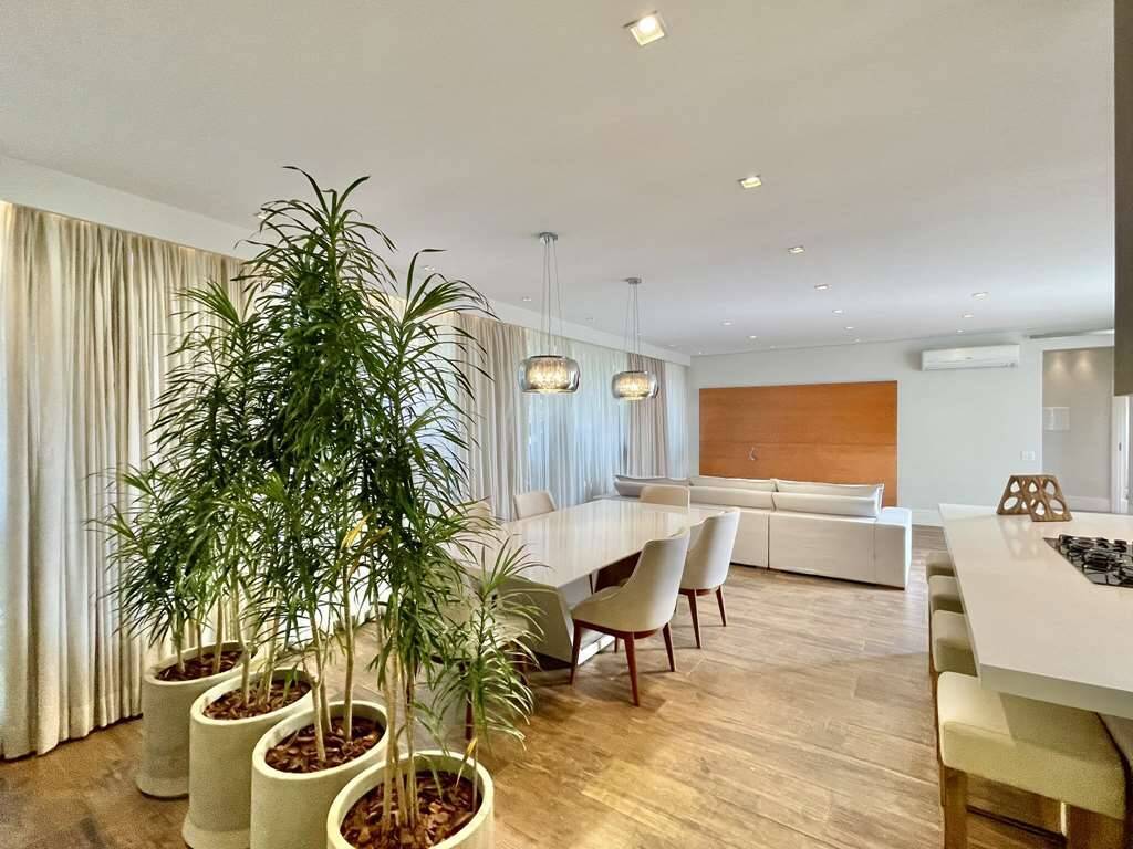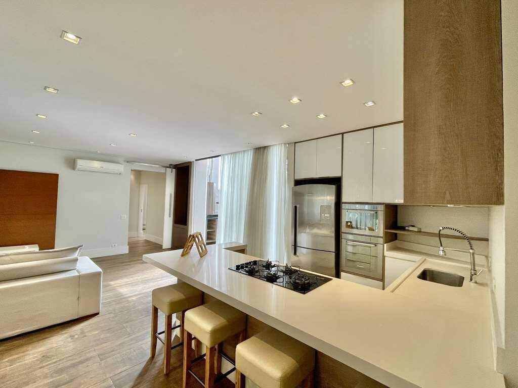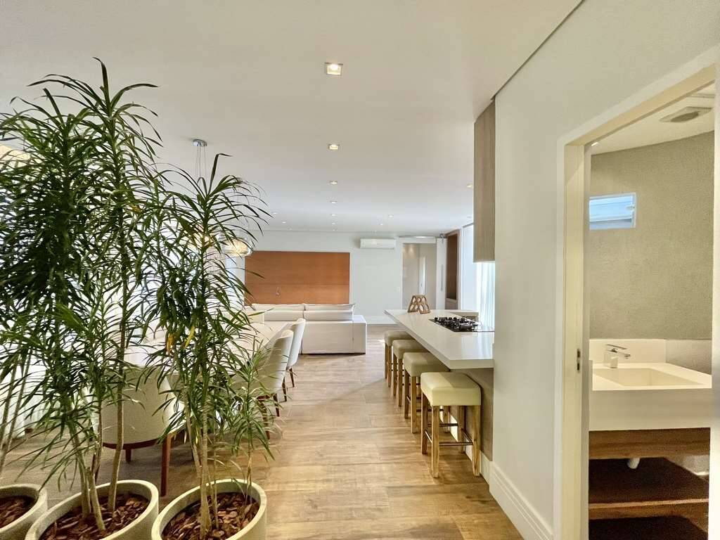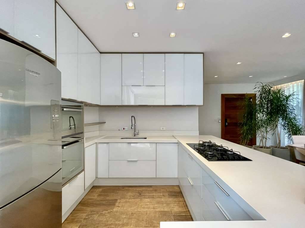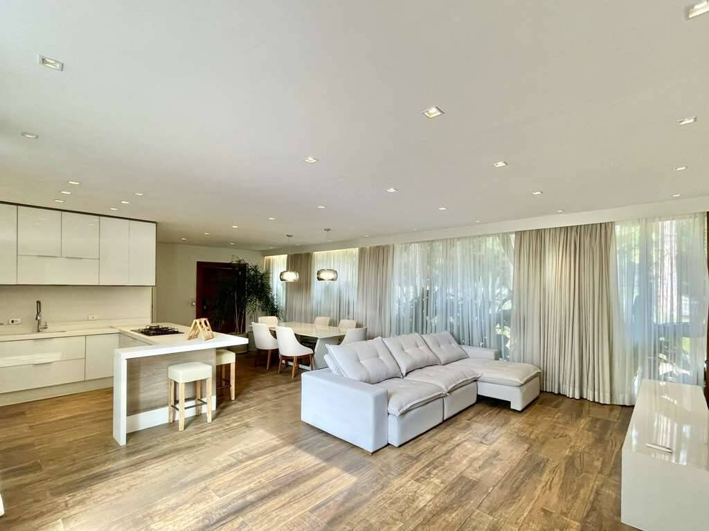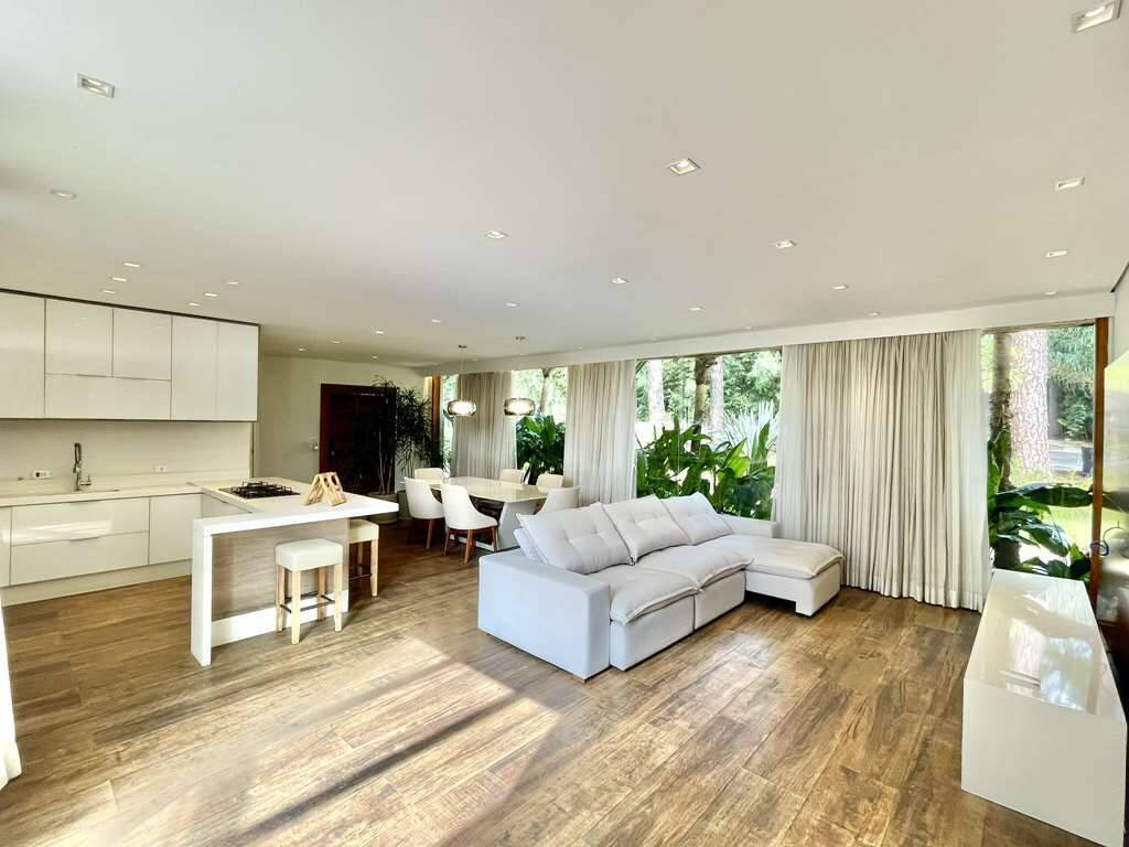 - Sala e cozinha integradas, com ar condicionado e parede voltado para alameda interna, totalmente envidraçada.