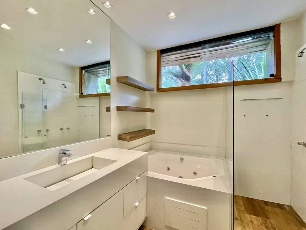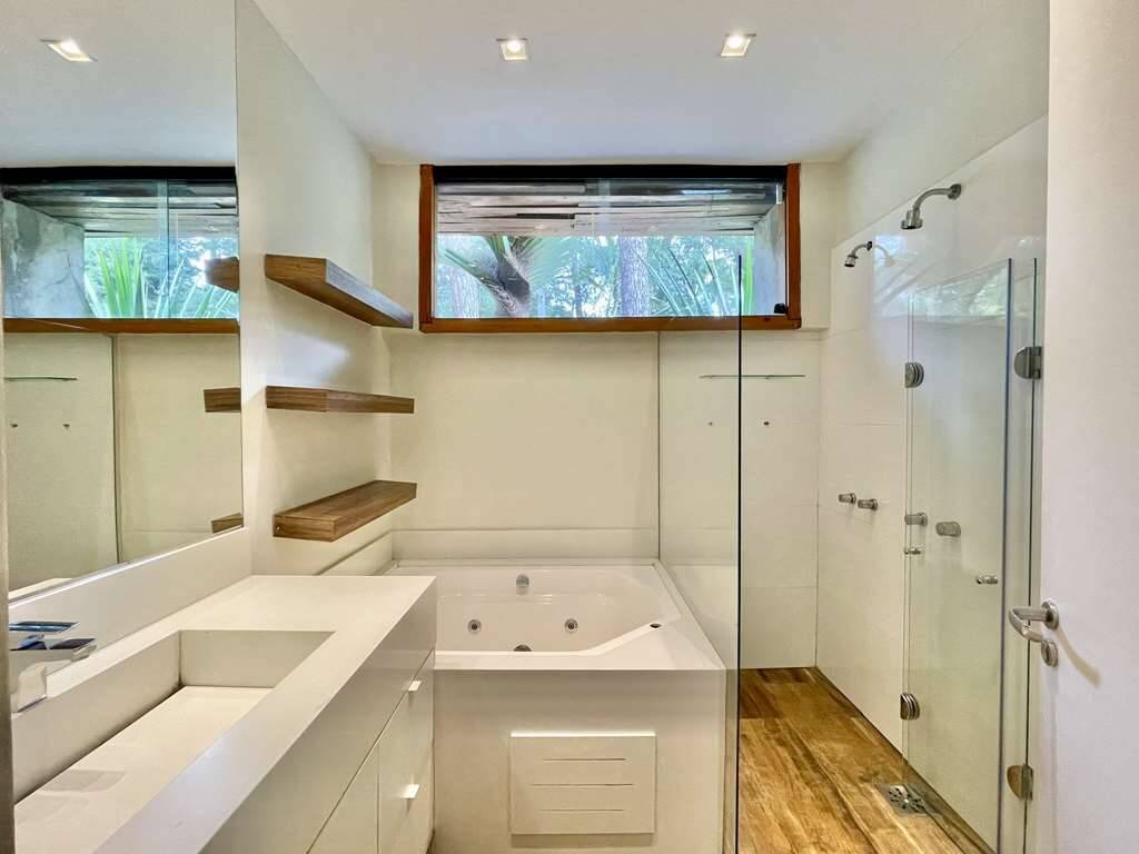 - Banheiros com box de vidro e gabinetes. Master com hidro.