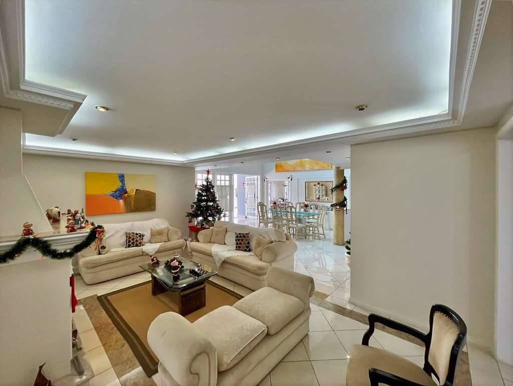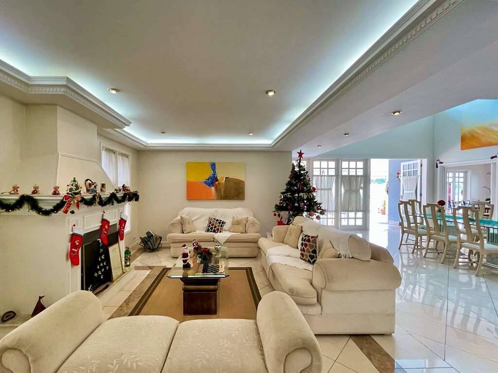 Living para 4 ambientes voltados para uma grande varanda gourmet, piscina e jardim.