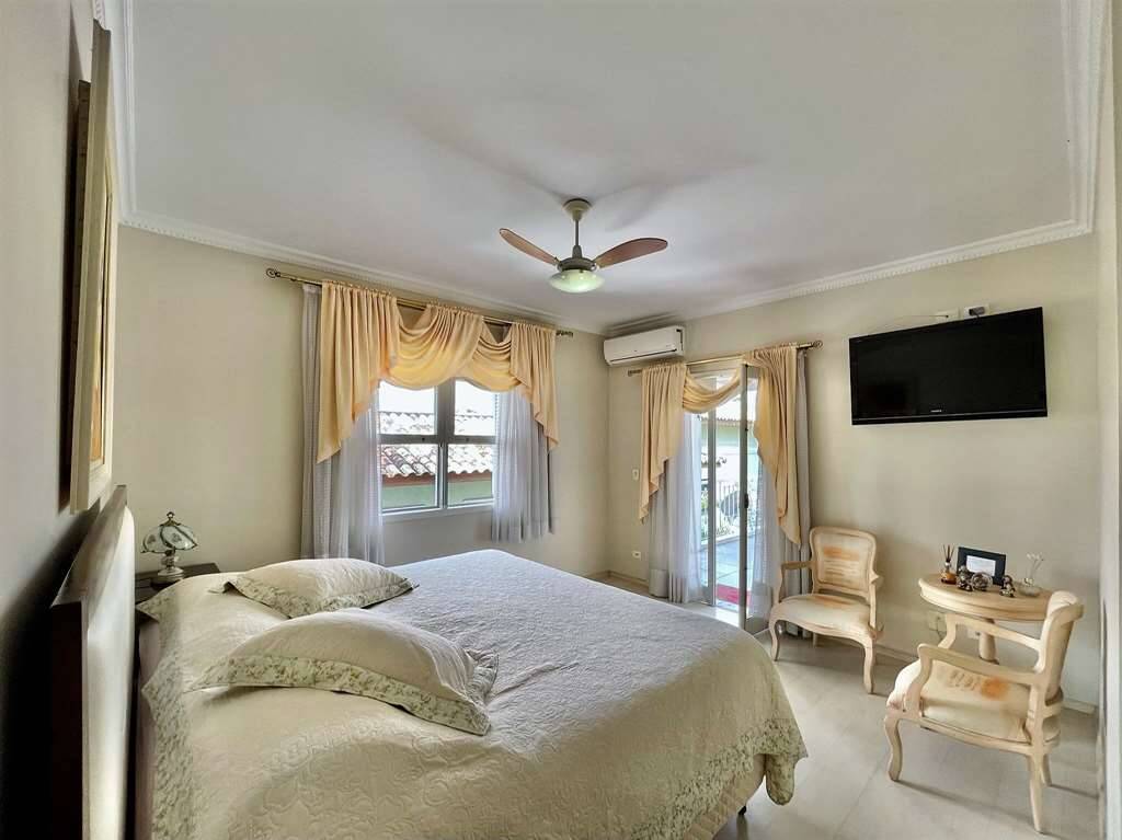 4 suítes com armários, sendo 2 com closets e ar condicionados. A master com aparador, gaveteiros, closet sr e sra, ventilador e grande varanda.