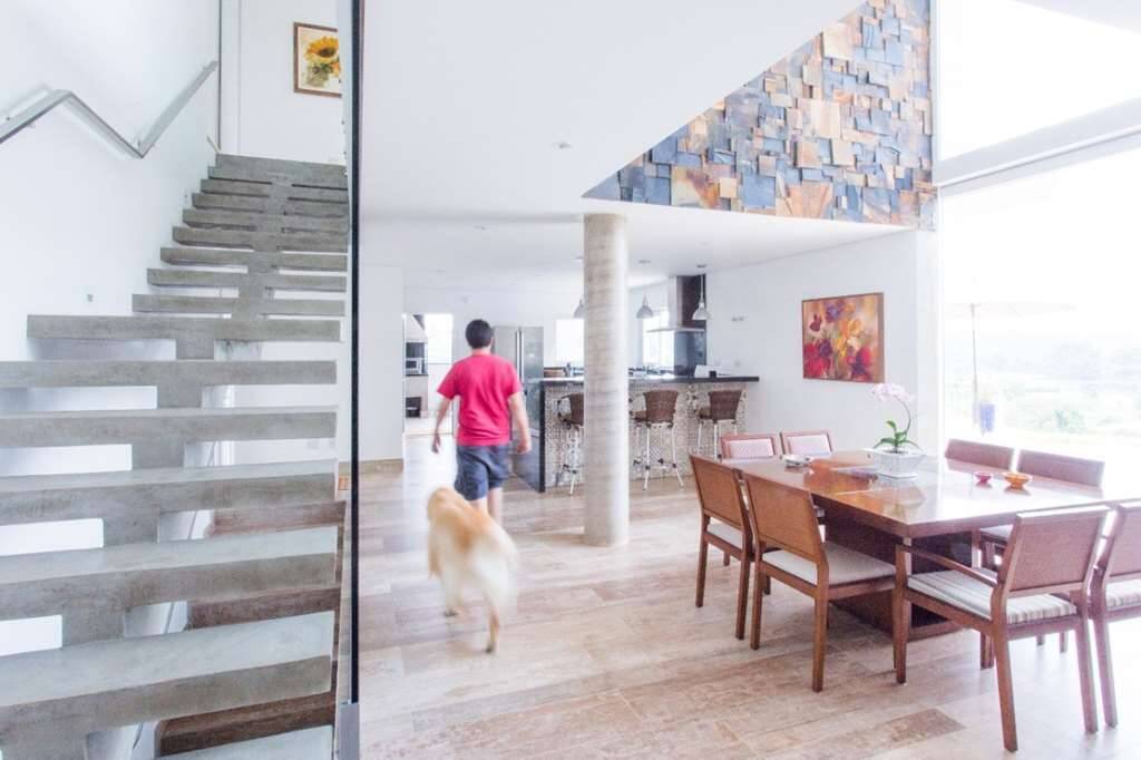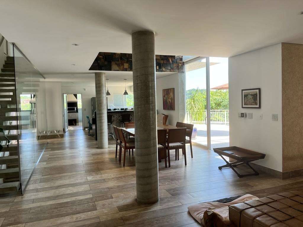 Salas de jantar e living facilmente integráveis a área da piscina através de portas de correr.