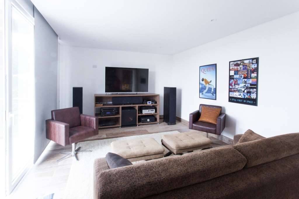 Espaçoso living para 4 ambientes e com lareira a lenha de cerca de 1 m3, para aquecer as noites mais frias