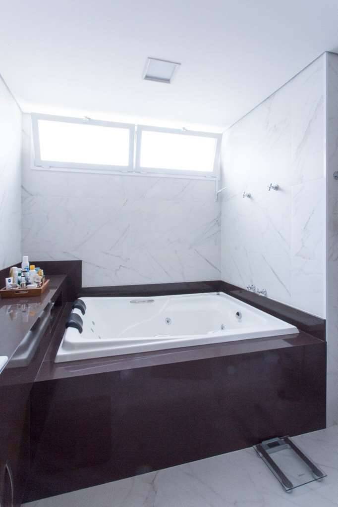 Banheiro com ducha e jacuzzi dupla com hidromassagem e cromoterapia