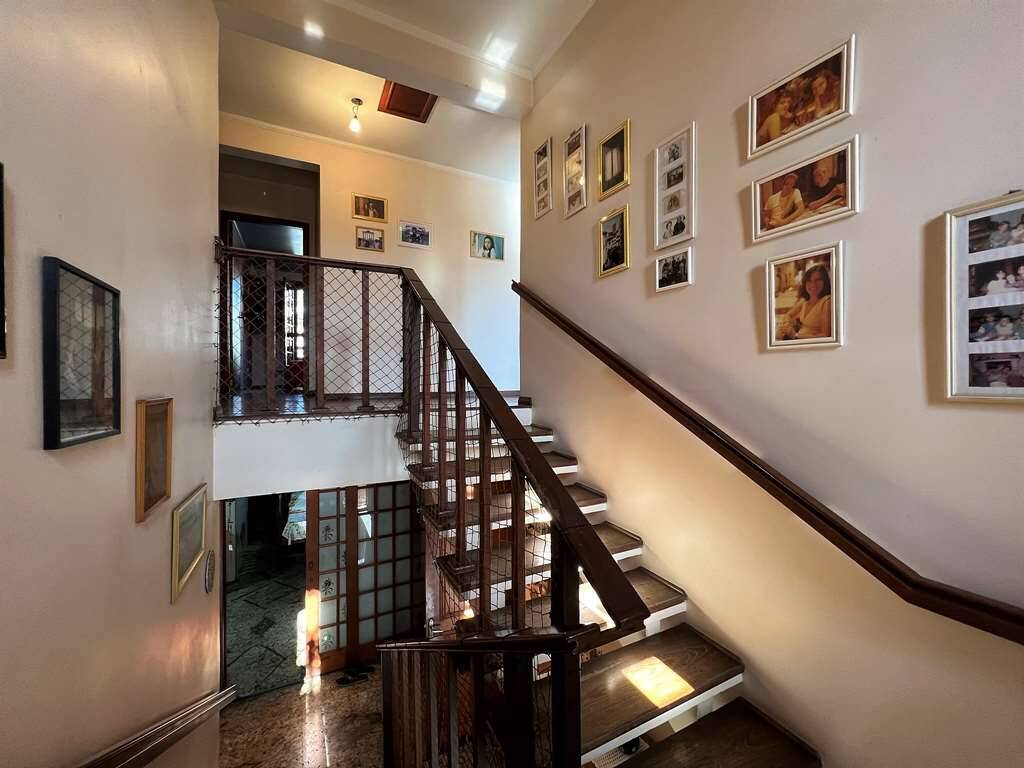 - Escada de alvenaria revestida de madeira com guarda corpo de madeira.