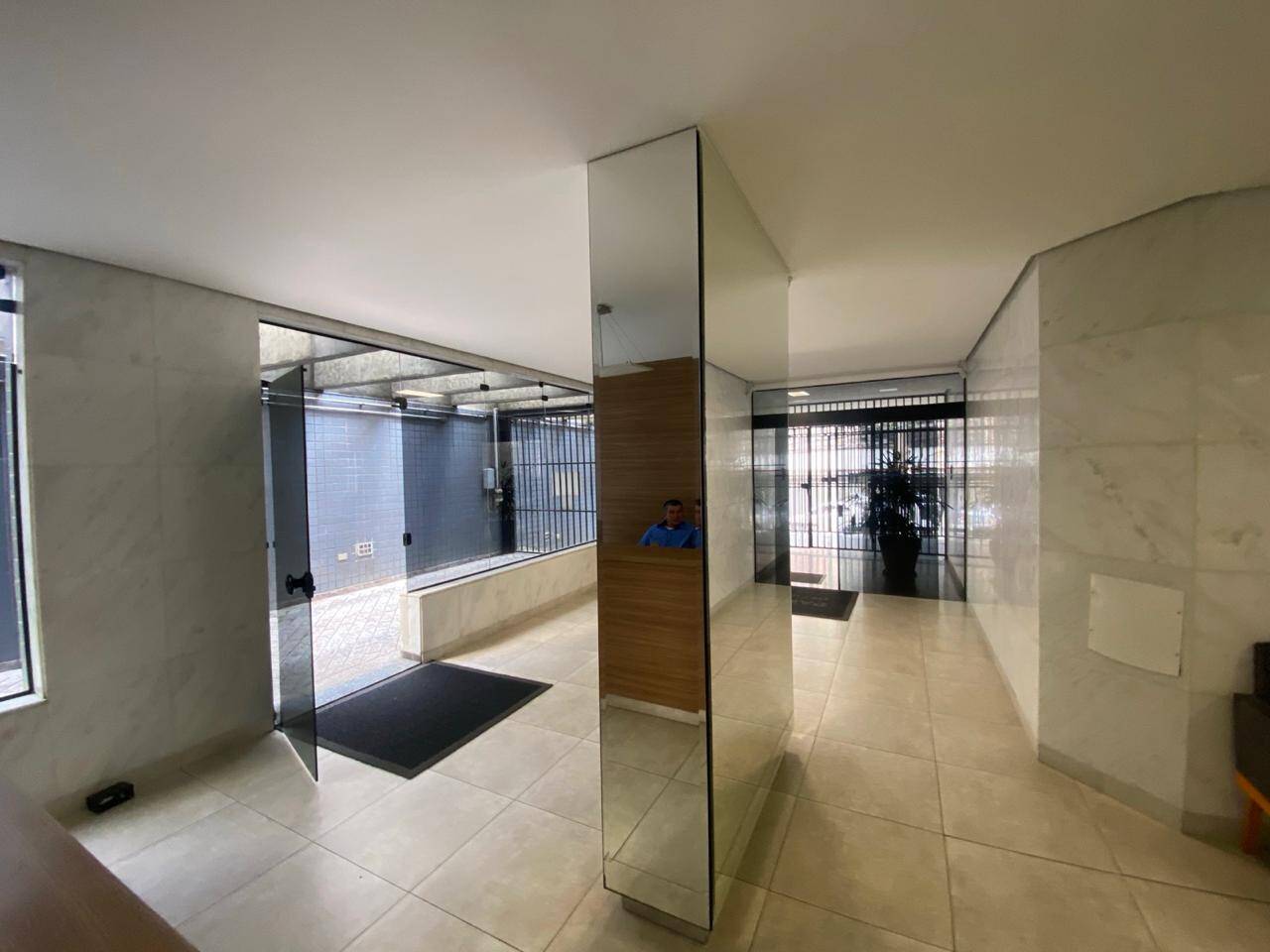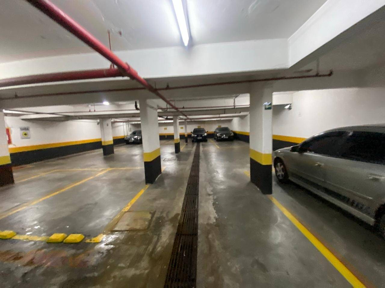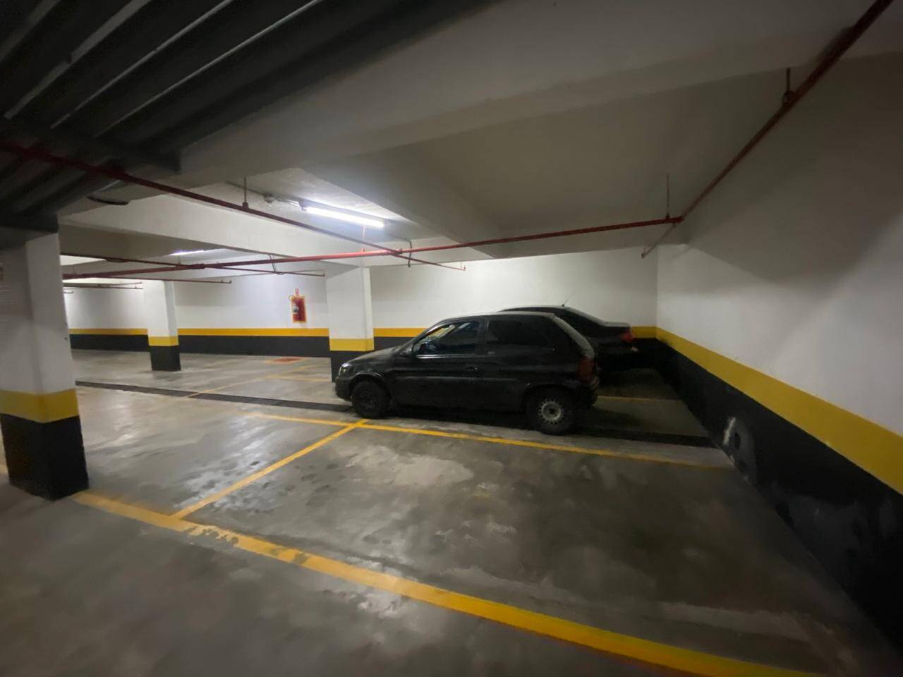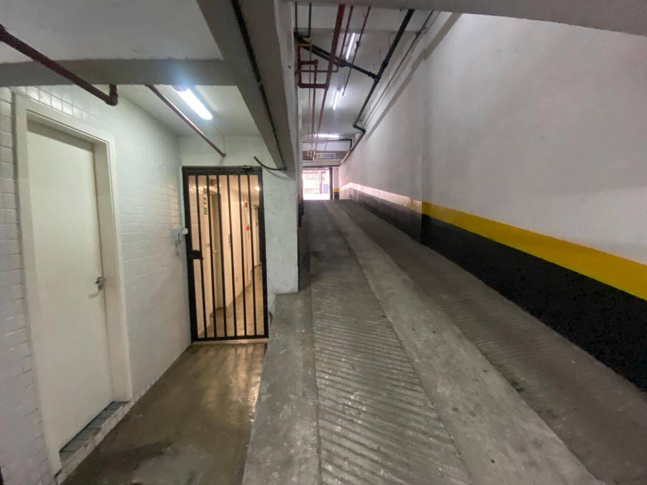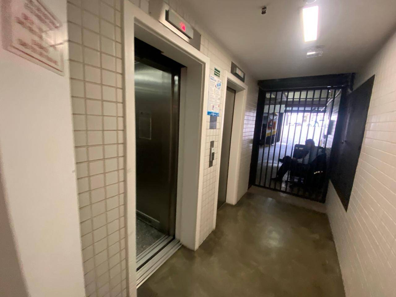 Condomínio com torre única possuindo 12 andares, 4 unidades por andar, 2 elevadores, portaria e estacionamento.