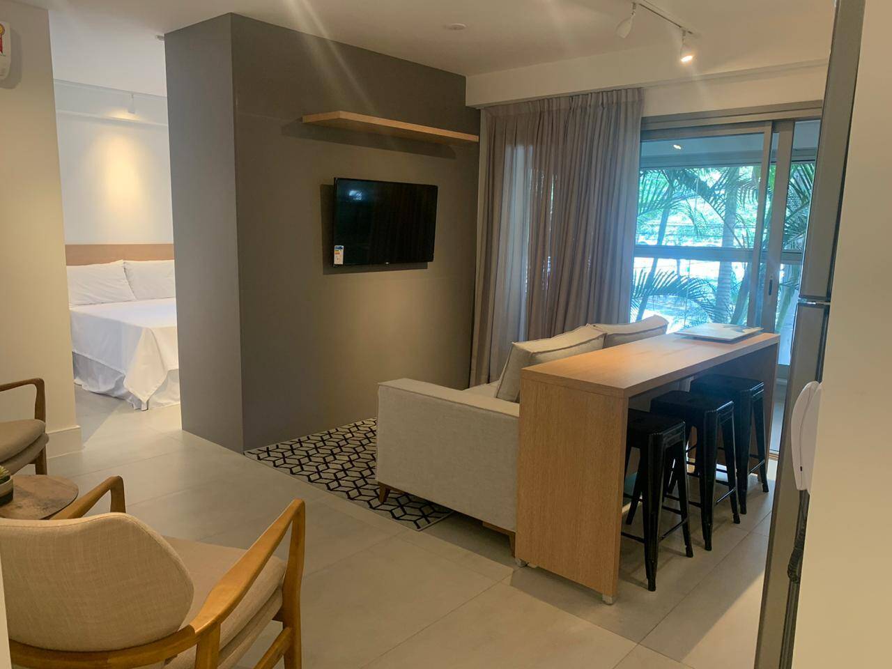 Suíte fechada. Sacada na sala, excelente iluminação e ventilação natural.