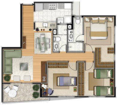 Apartamento com 83m2 ,2 quartos sendo 1 suíte, 2 banheiros e 2 vagas.