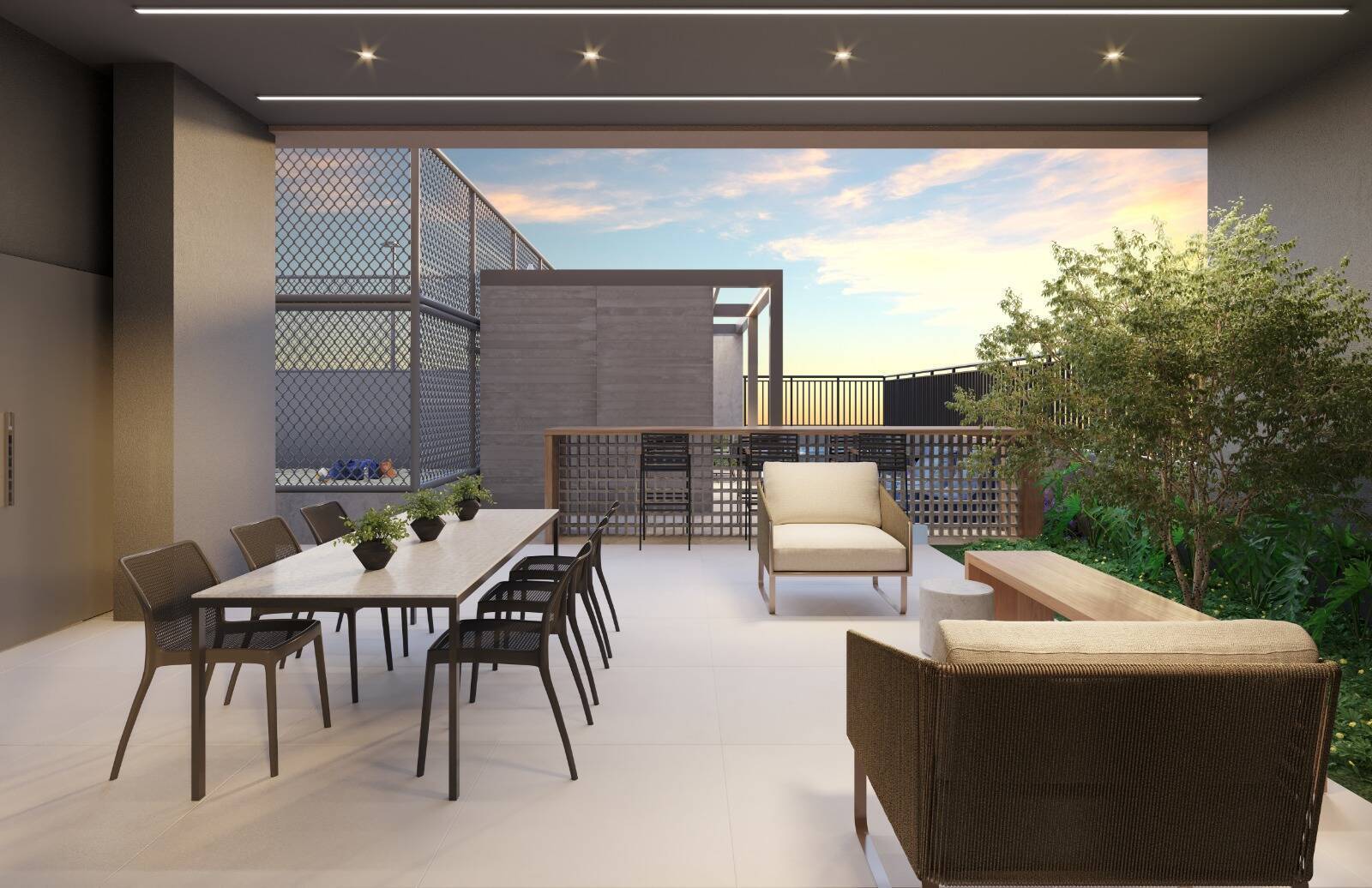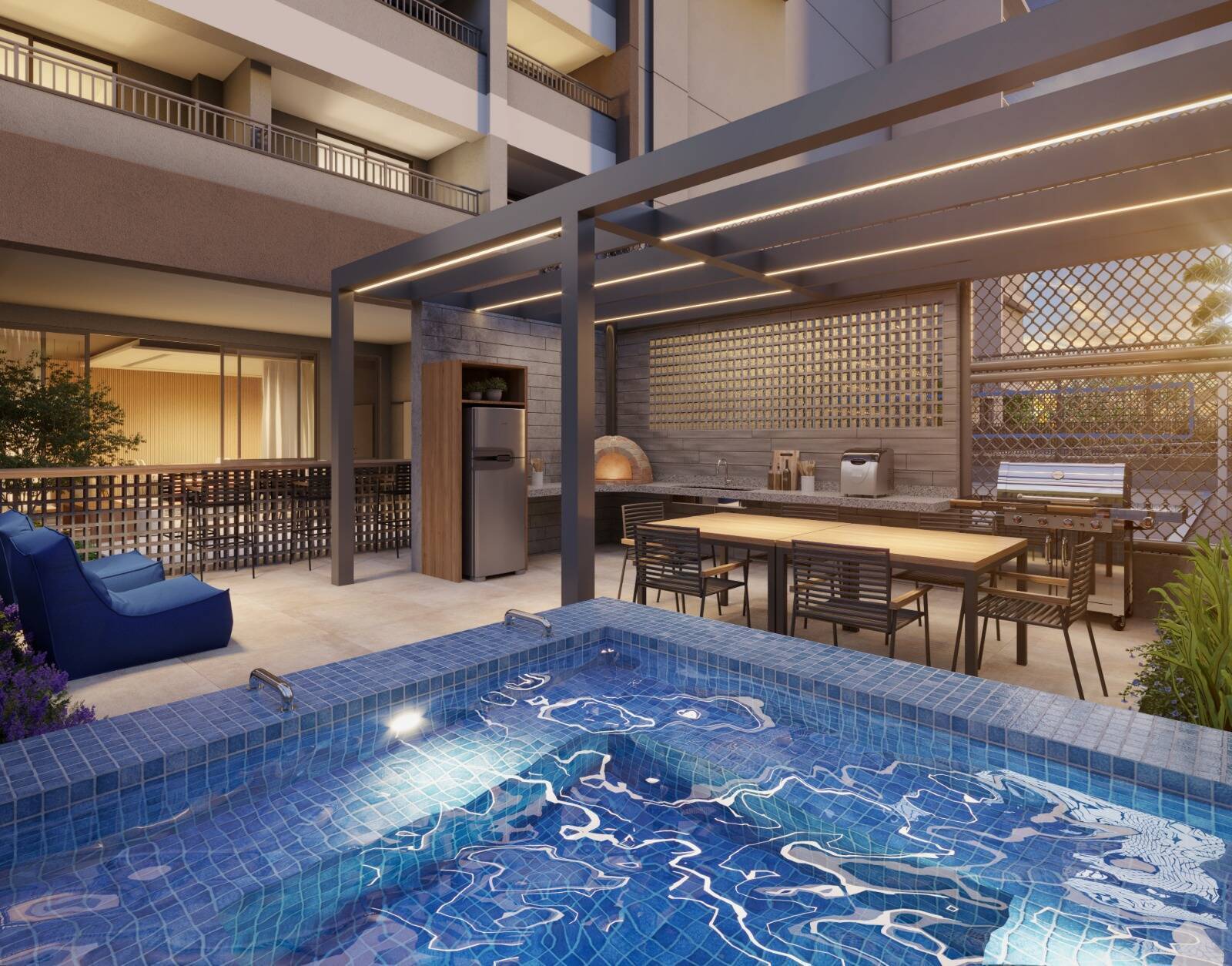 Bicicletários, brinquedoteca, bussines place, churrasqueira, cinema, deck molhado, fitness, piscina, sala de jogos, salao de festas, spa, beach tenis