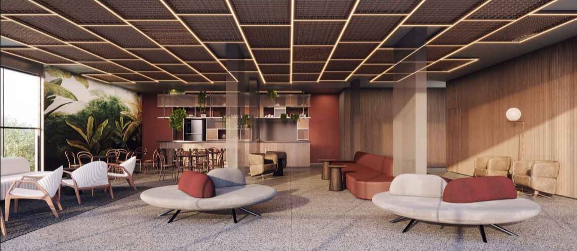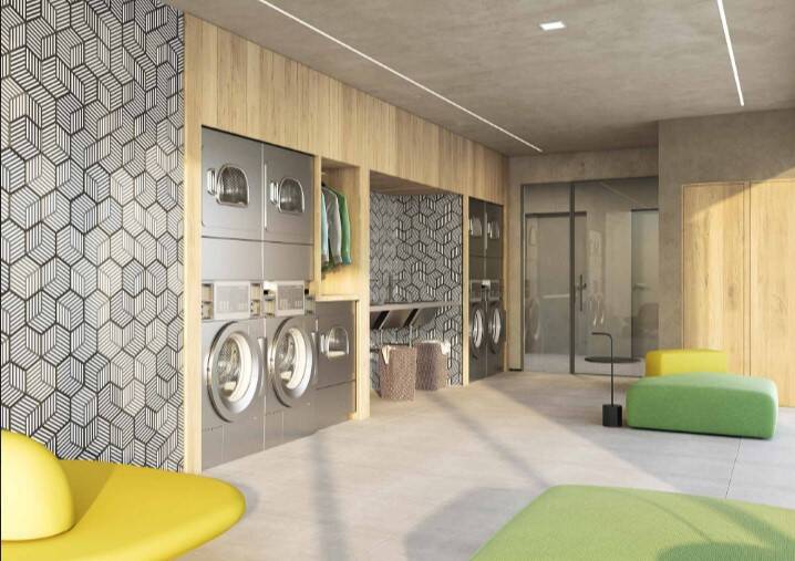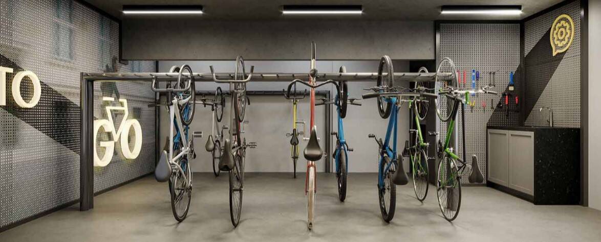 com jogos e café, lavanderia coletiva, piscina com solarium, fitness, quadra de squash, bicicletário, espaço delivery,