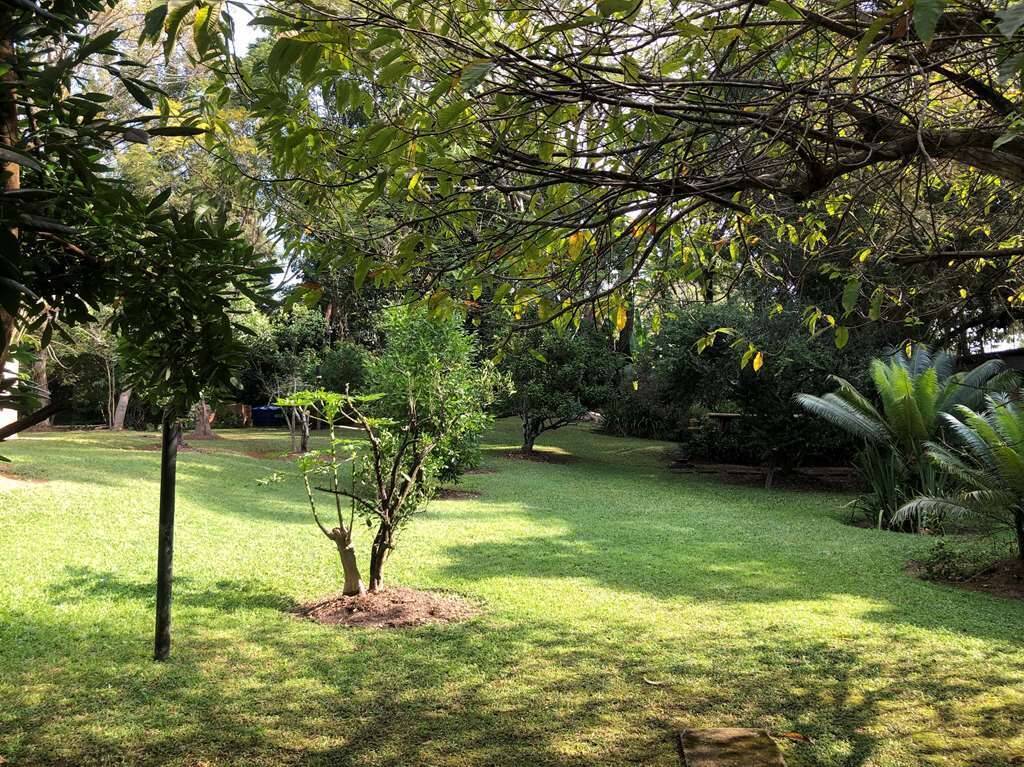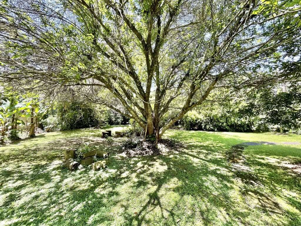 Jardim lindo com Paisagismo Formado com Flamboyant e Frutíferas: jambo, castanha portuguesa, laranja, limão, jaca, banana, abacate e acerola.