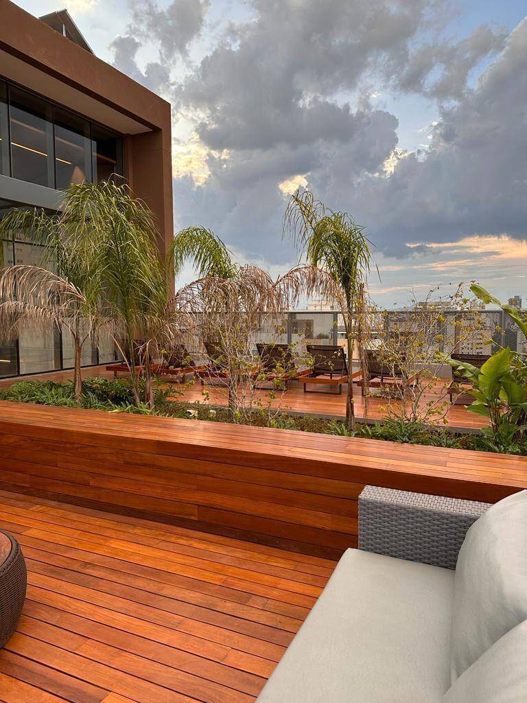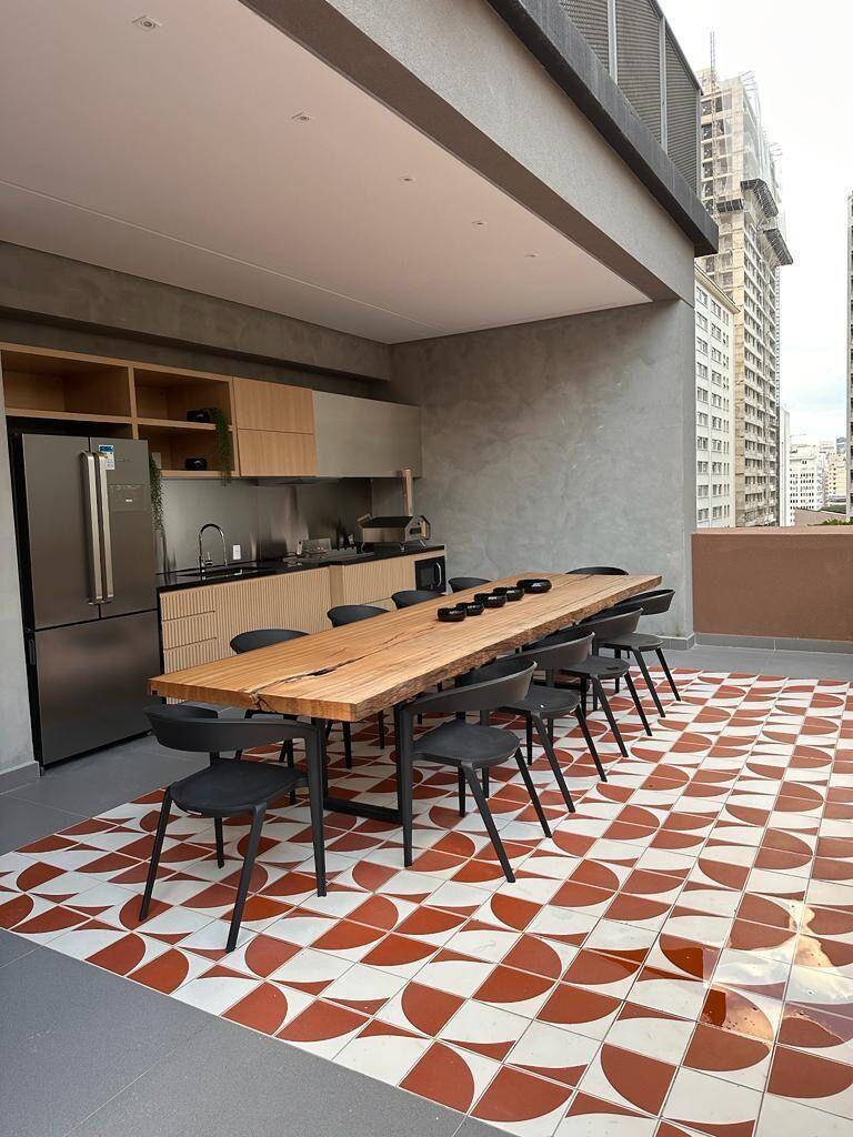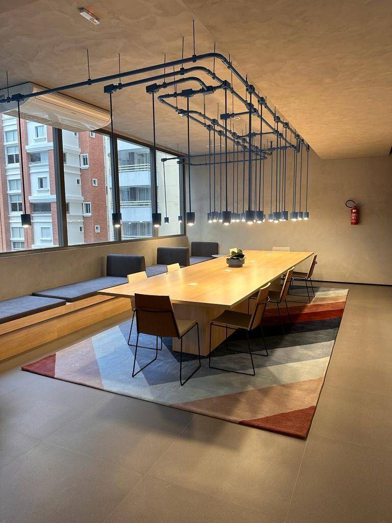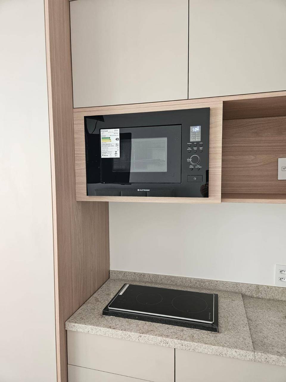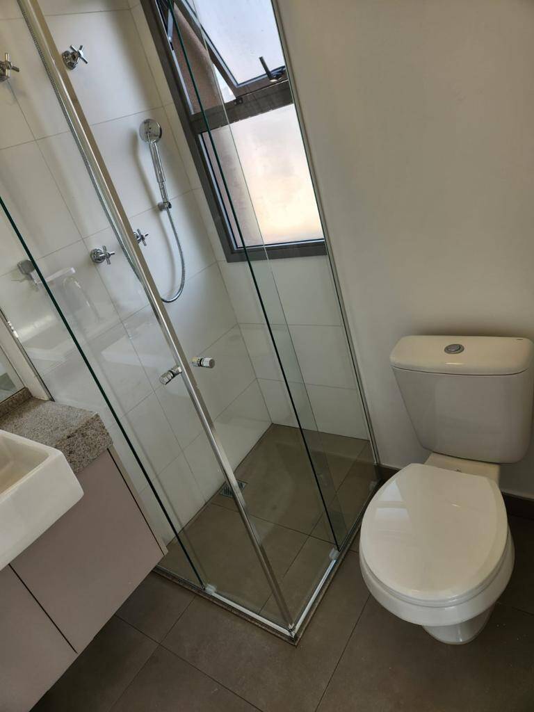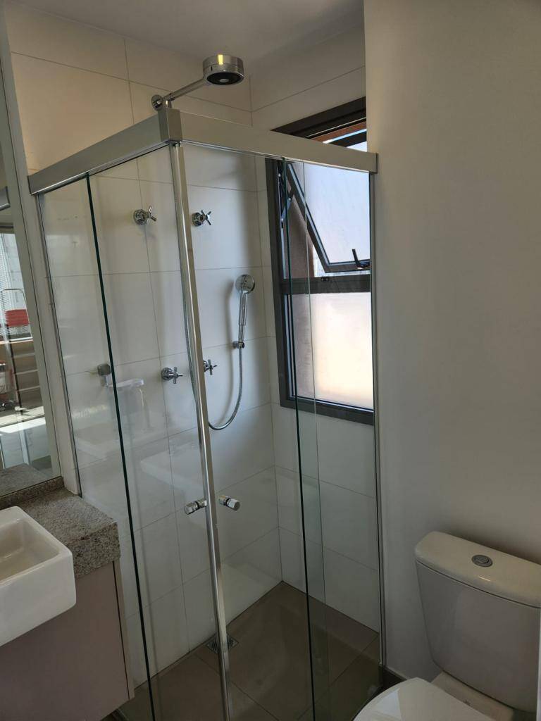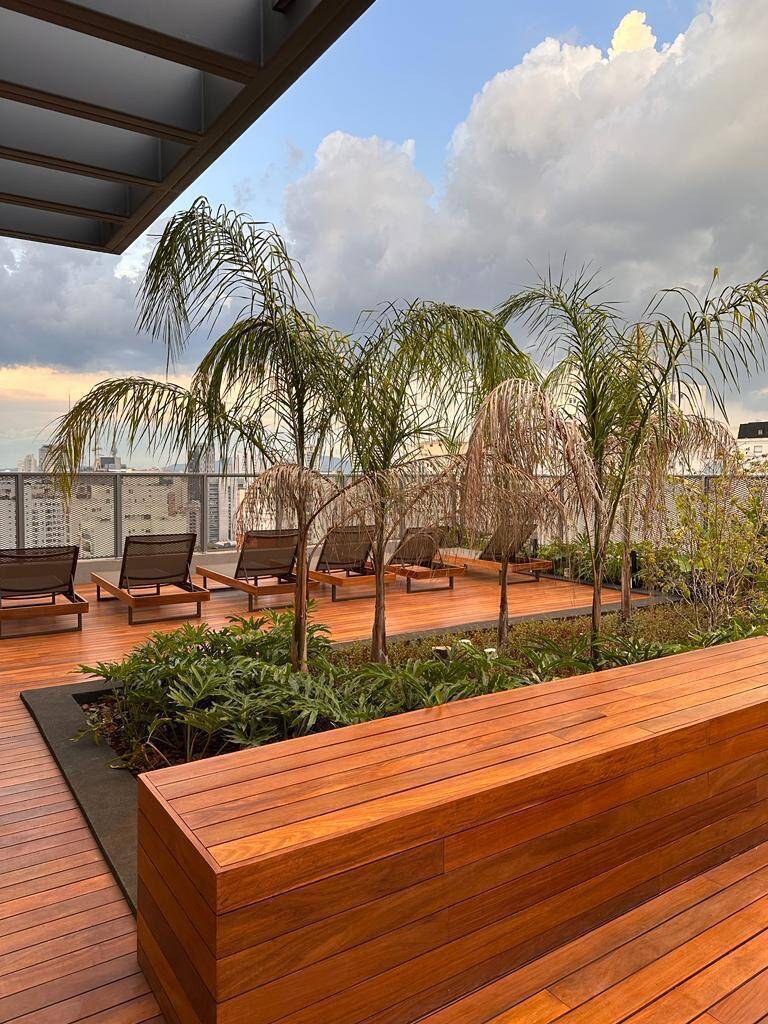 Totalmente mobiliado com ar condicionado, geladeira, cocktop, microondas, armários, cama, televisão, persiana, cortina Black out
