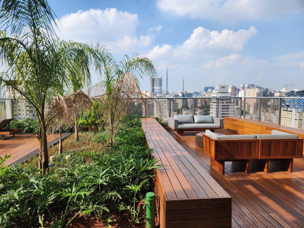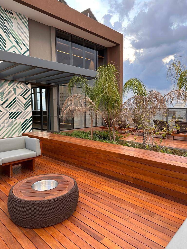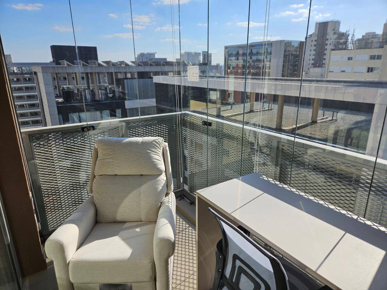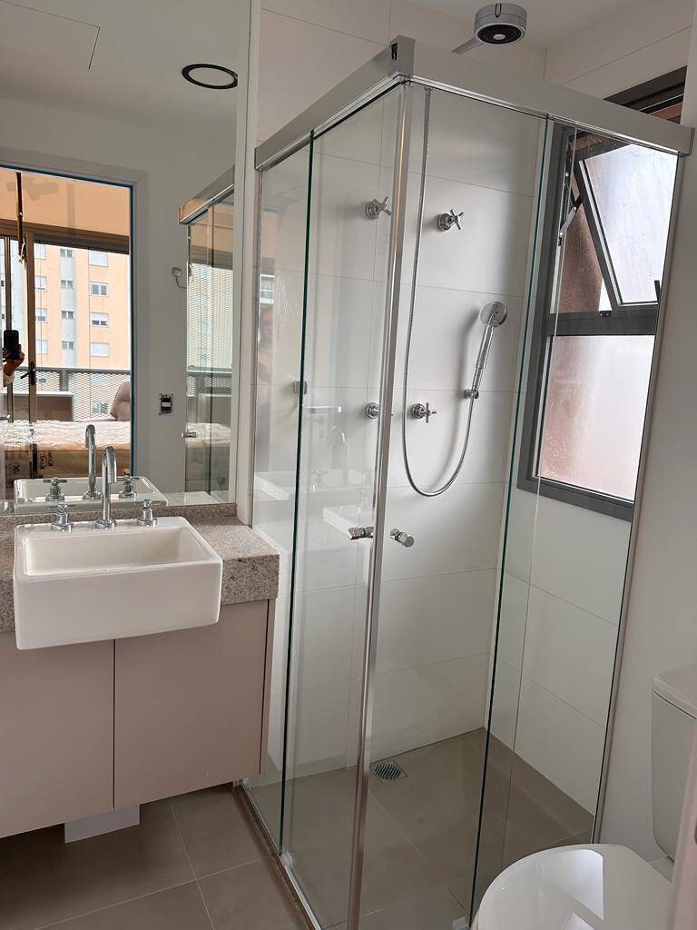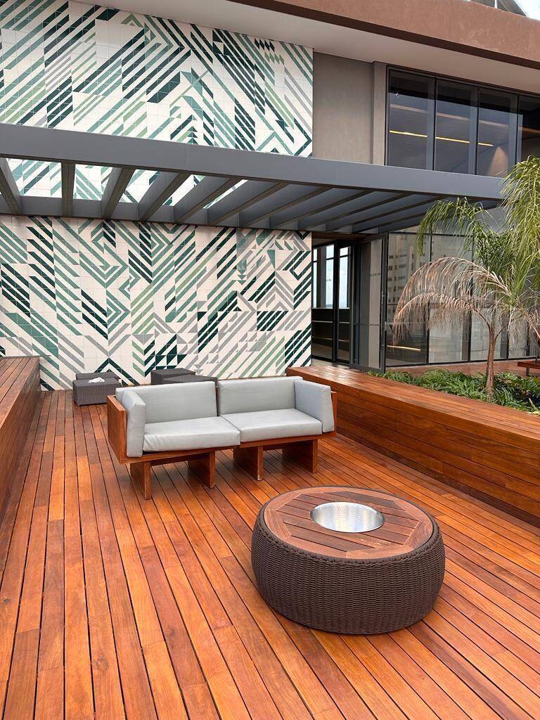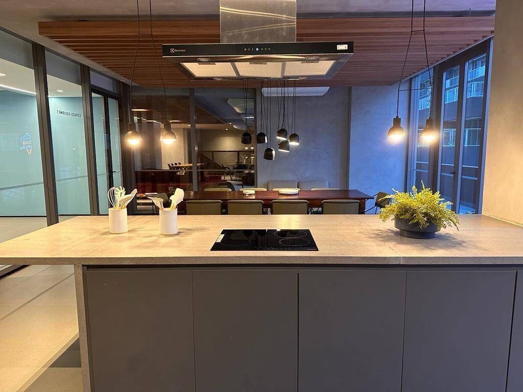 Totalmente mobiliado com ar condicionado, geladeira, cocktop, microondas, armários, cama, televisão, persiana, cortina Black out