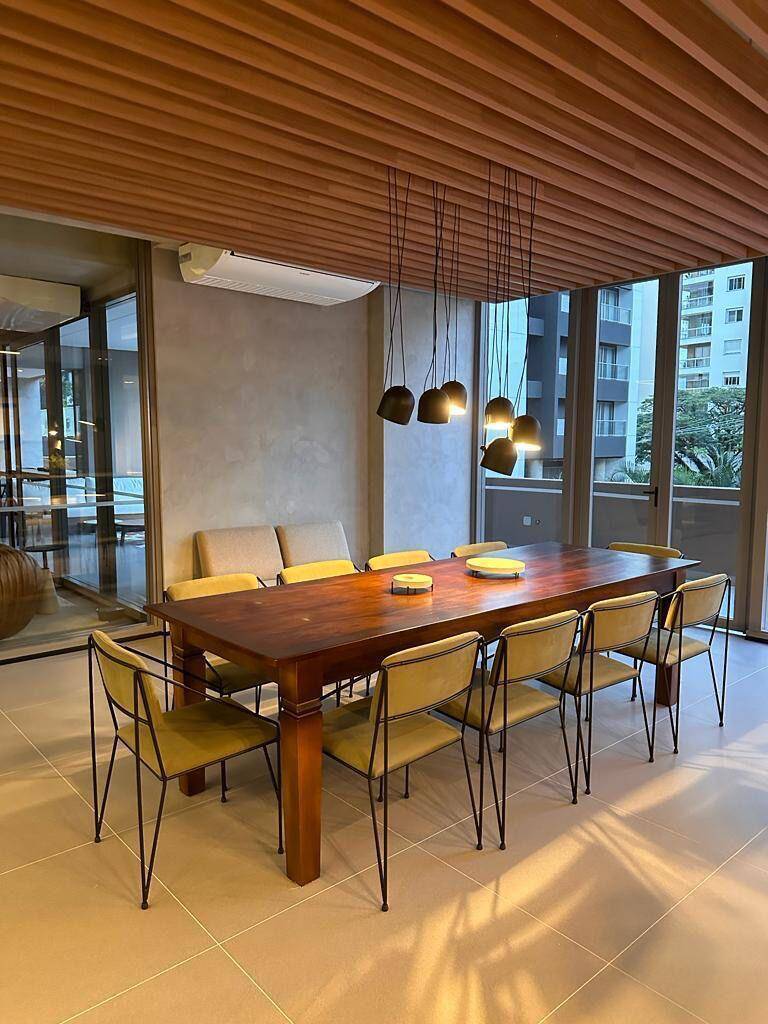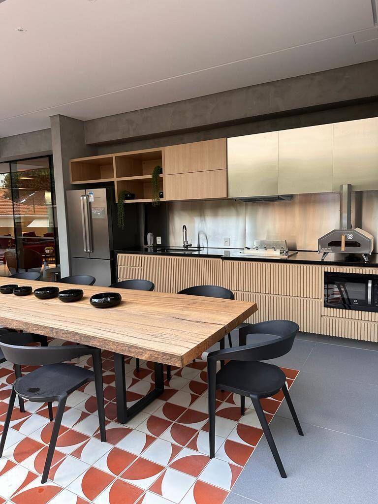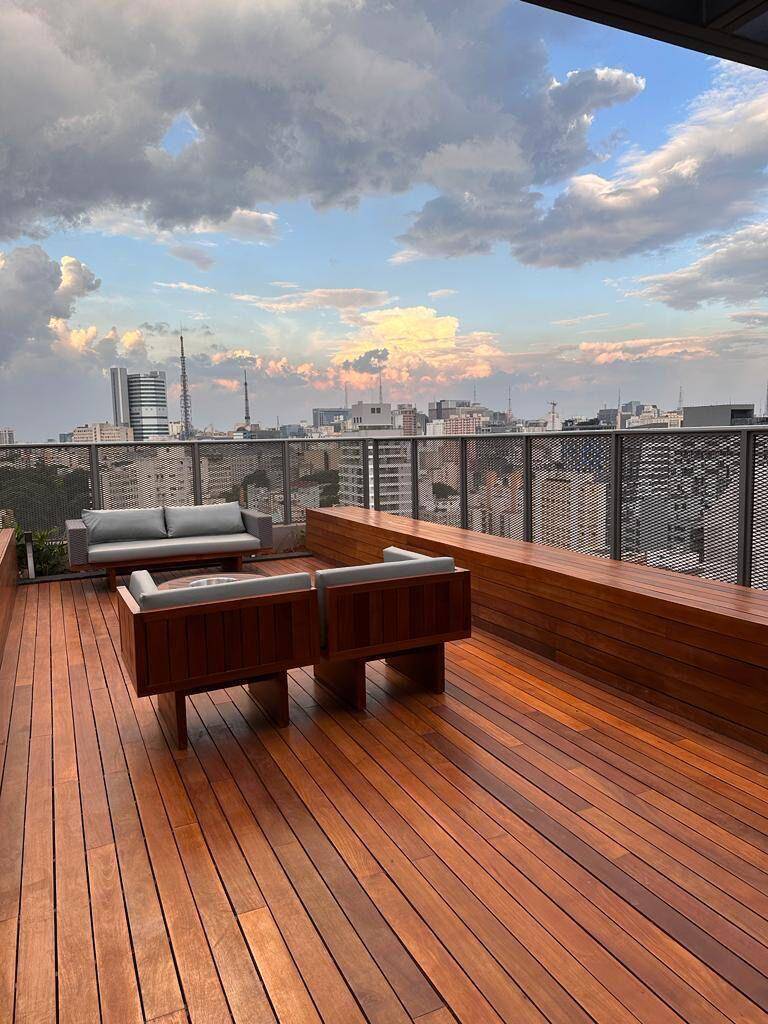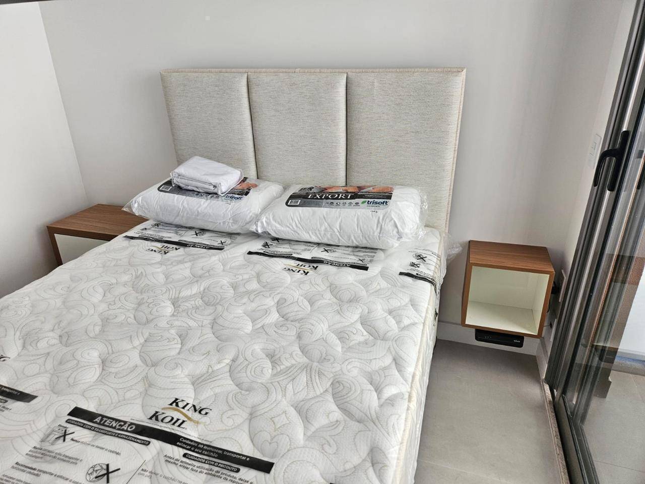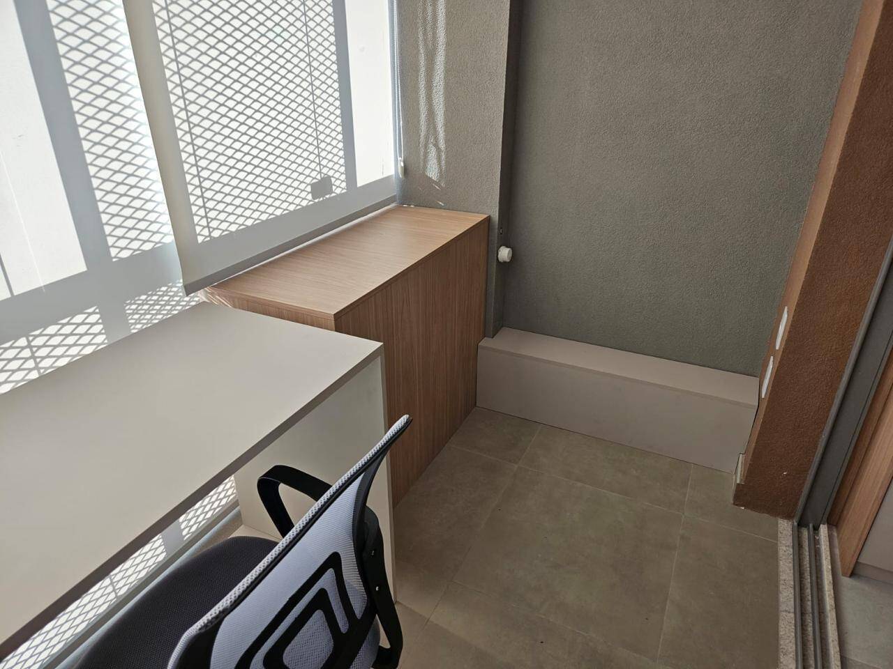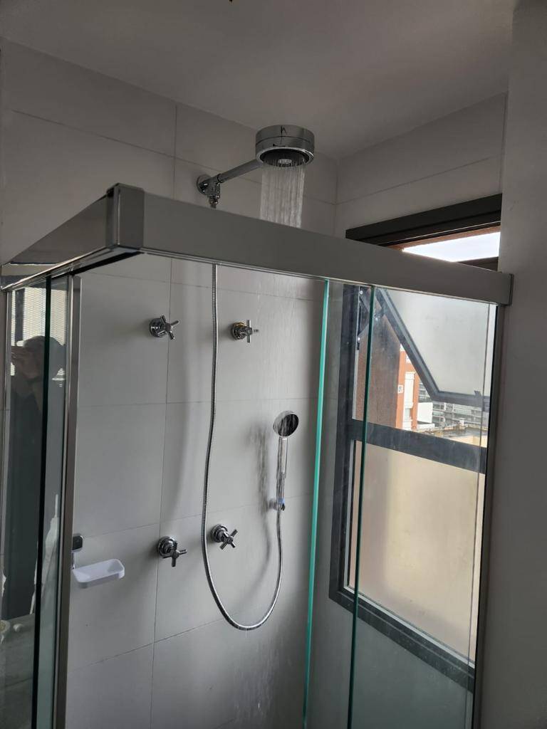Totalmente mobiliado com ar condicionado, geladeira, cocktop, microondas, armários, cama, televisão, persiana, cortina Black out