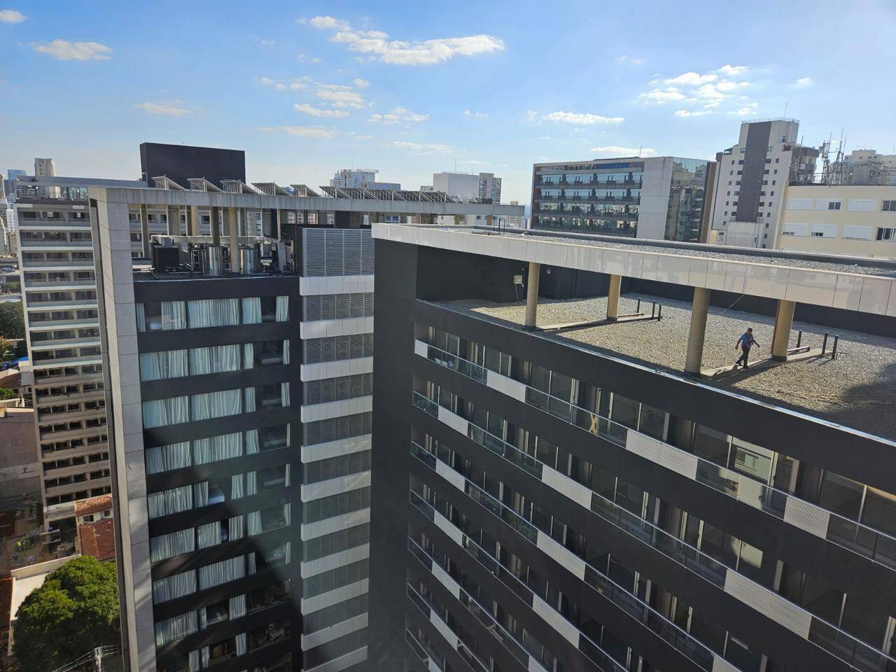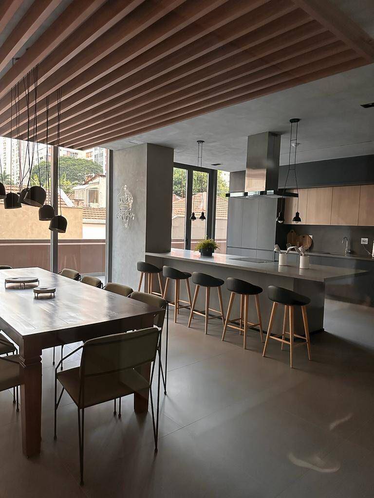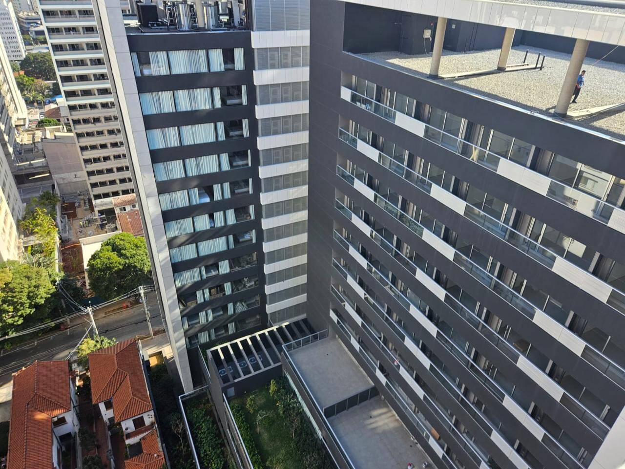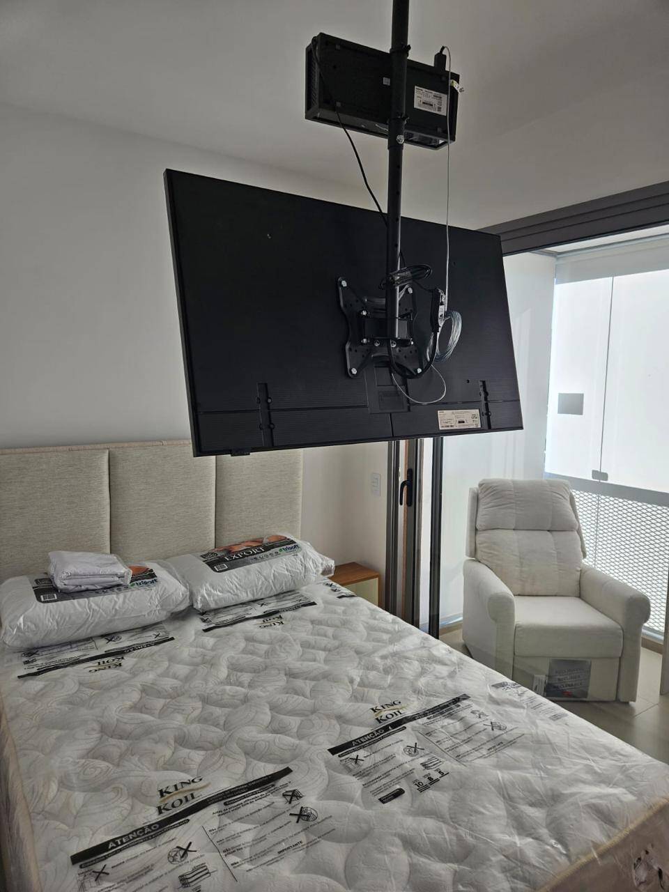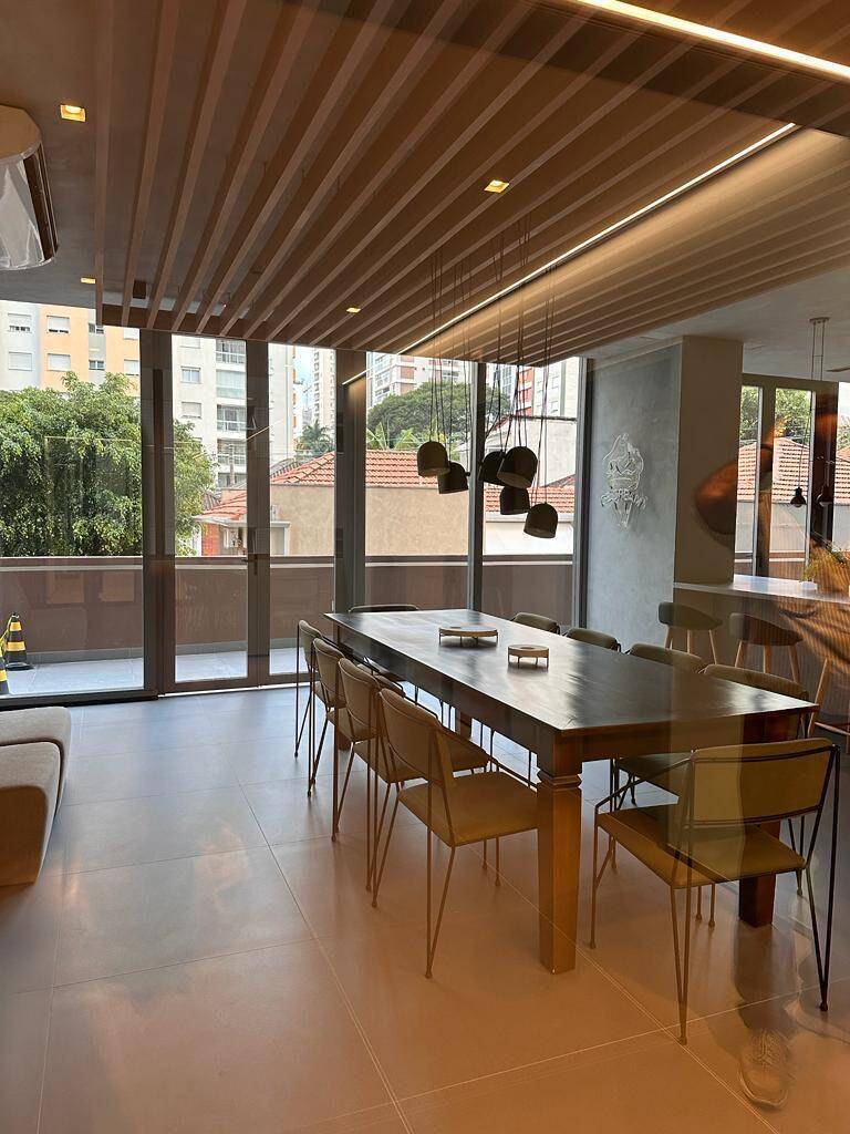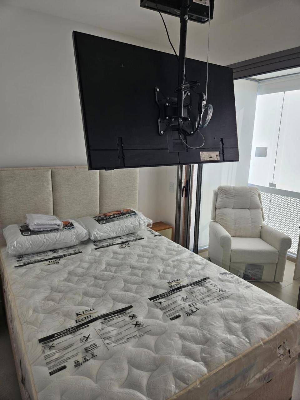 Totalmente mobiliado com ar condicionado, geladeira, cocktop, microondas, armários, cama, televisão, persiana, cortina Black out