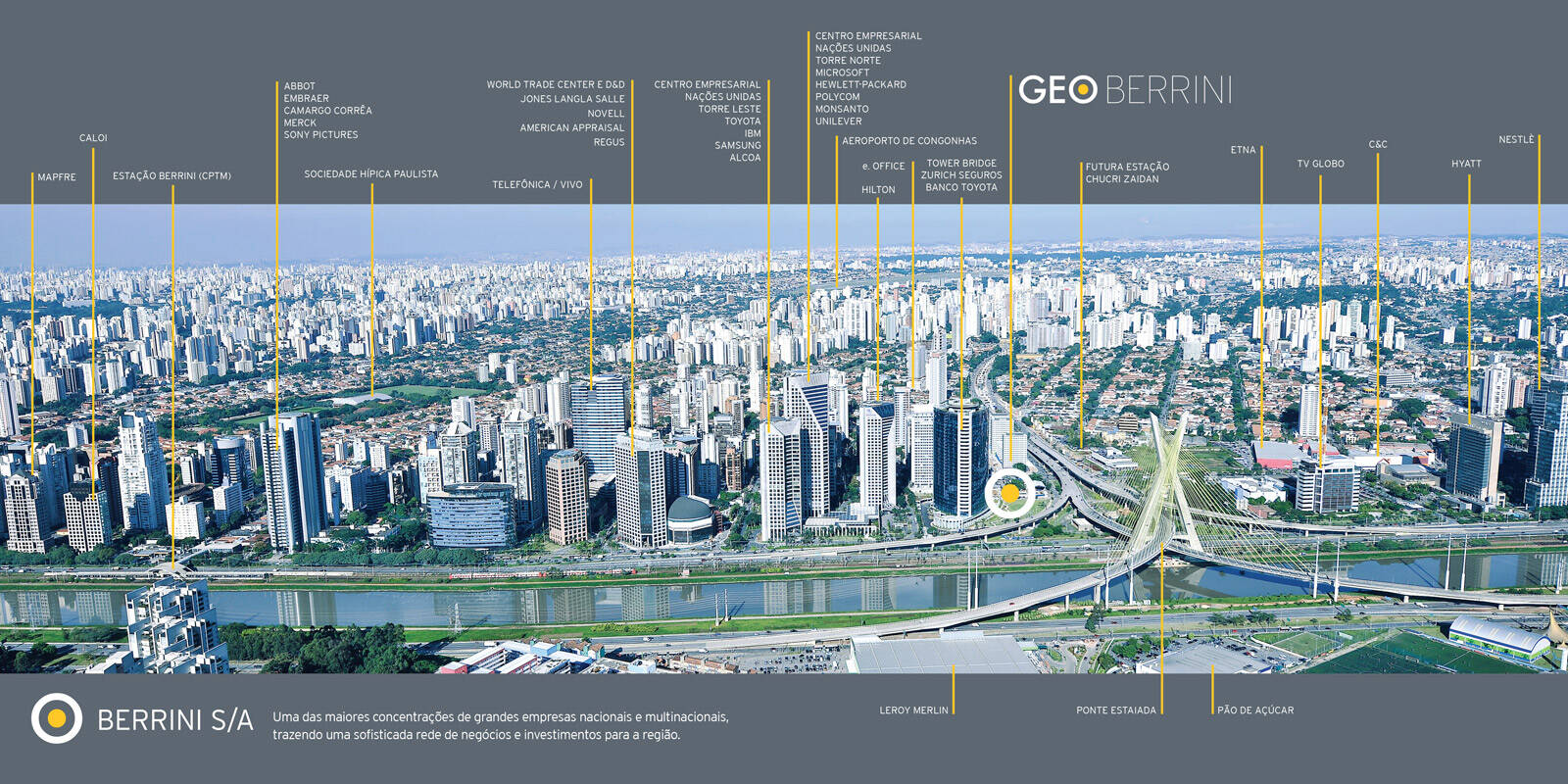Região da Berrini, próximo a Ponte Estaiada, Hilton Hotel, Av. Roberto Marinho, Av. Chucri Zaidan, Shoppings Deamp;D, Morumbi e Market Place e Marginal Pinheiros.