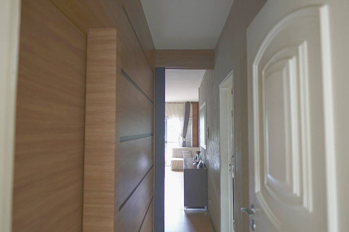 ? Escada de acesso e corredor interno na área íntima da casa